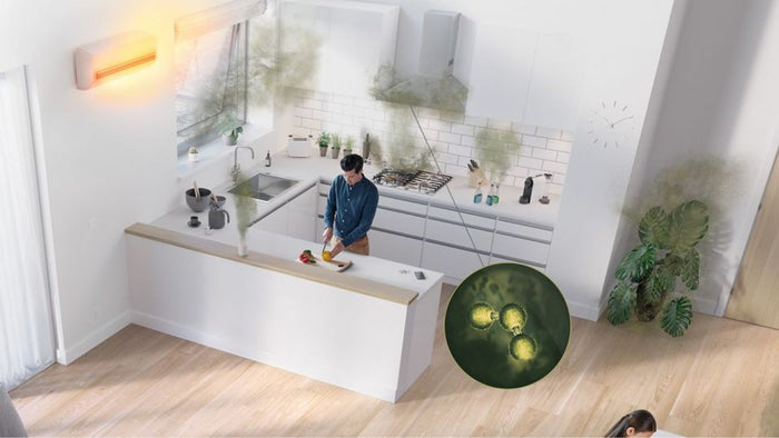 Captures common household pollutants such as dust, pet dander, bacteria and mould. Heats the whole room in winter,⁴ cools you fast in summer.¹ Purifies all year round.