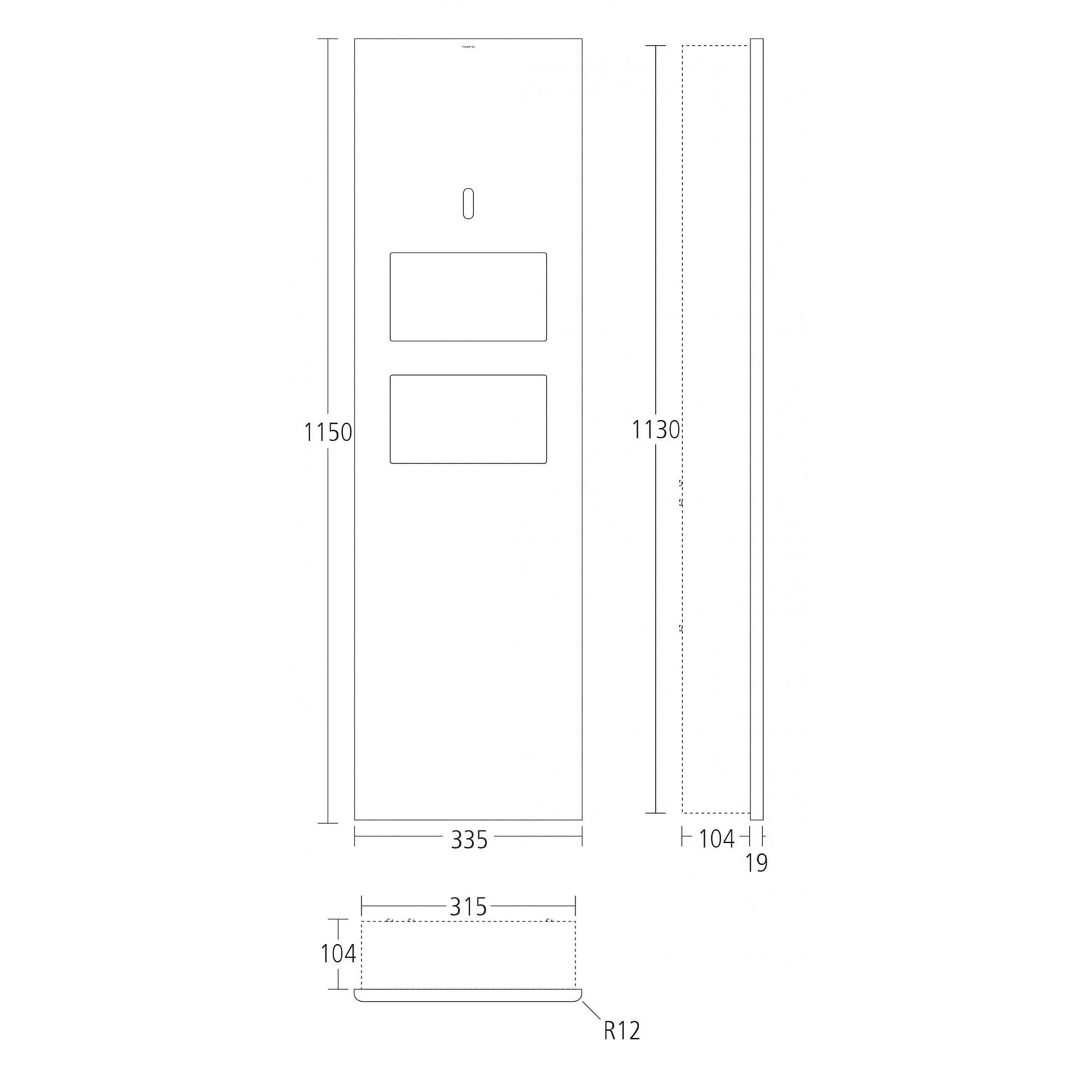 • Dimensions: 1150 H , 335 W , 19 P (mm)