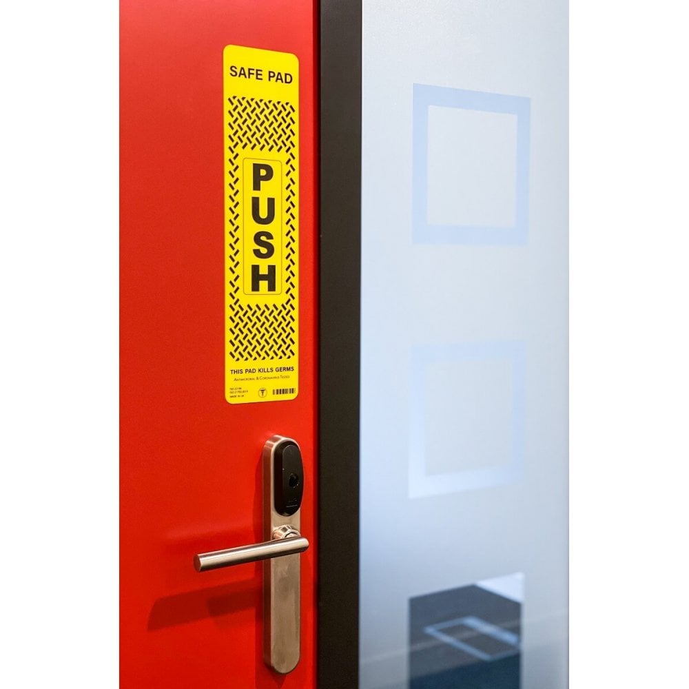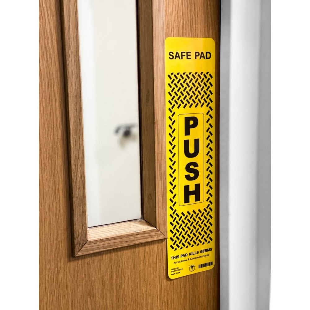 - Large antibacterial push pad for push doors and existing push plate covers to prevent the spread of bacteria in your building or workplace.