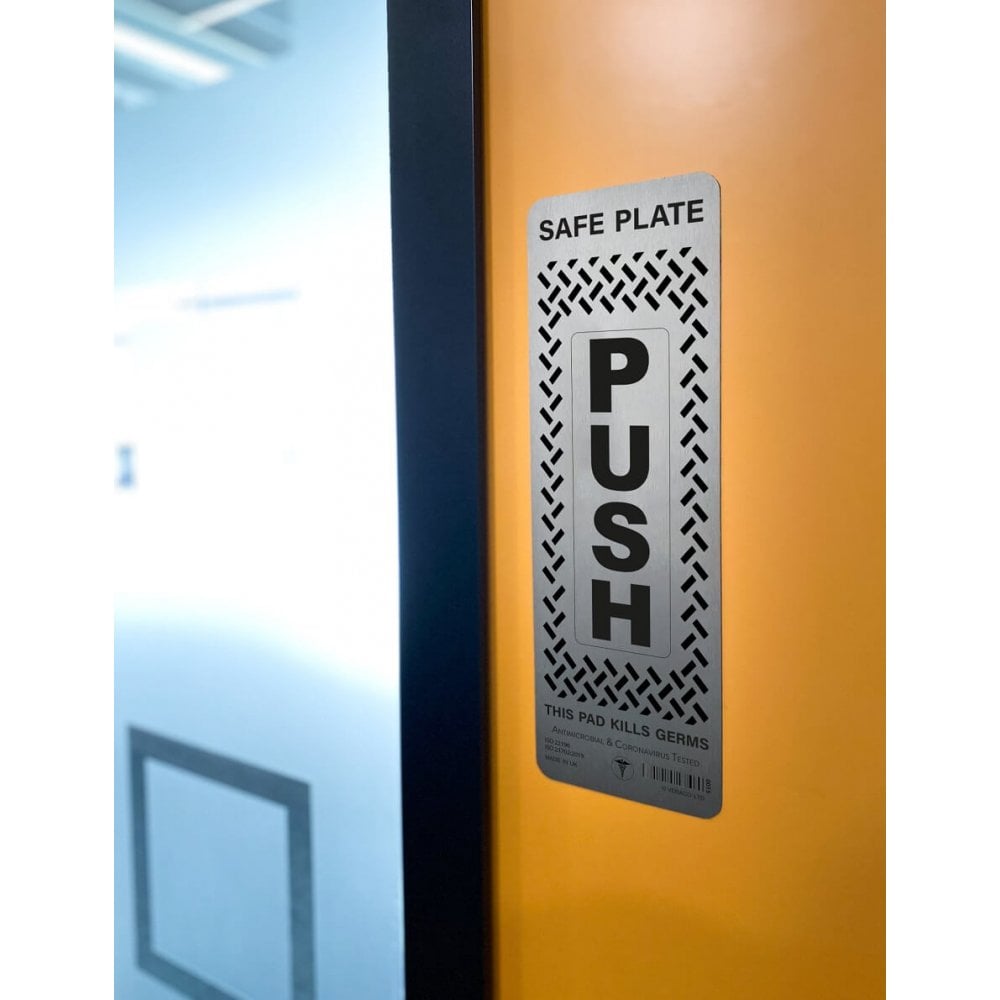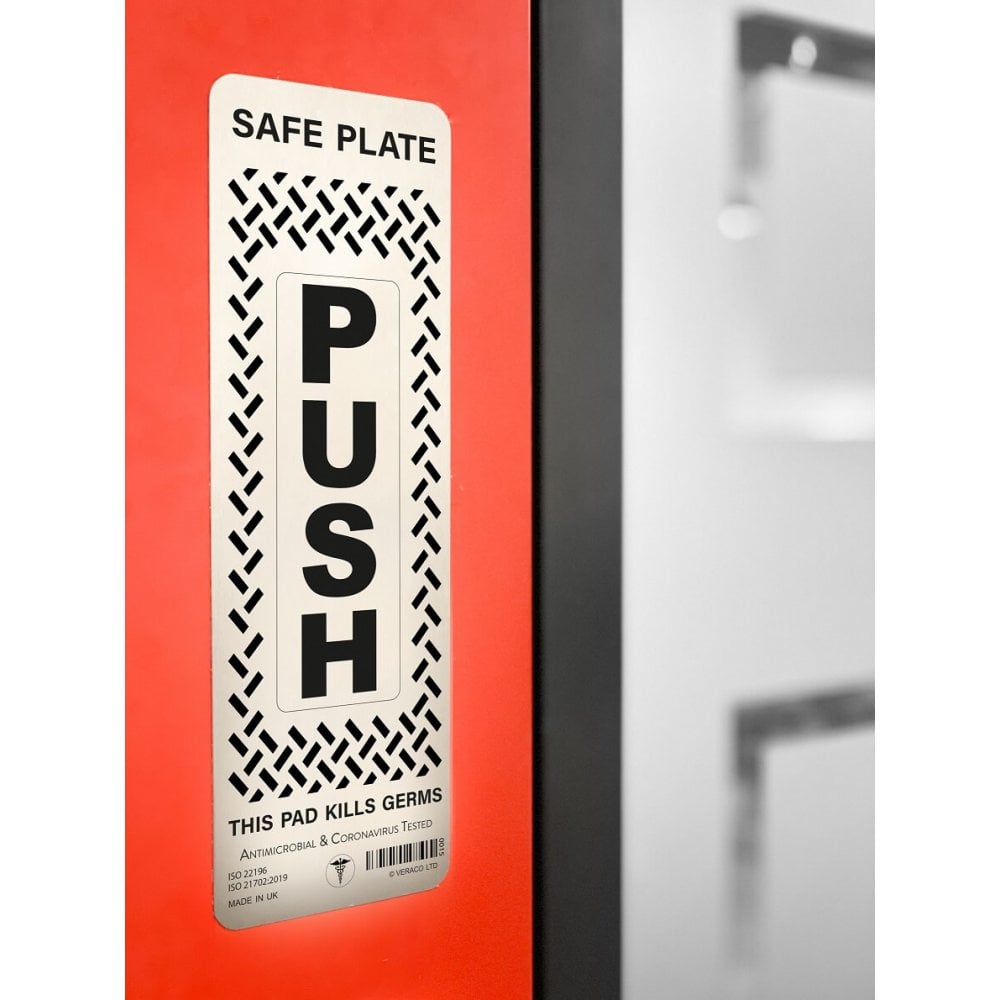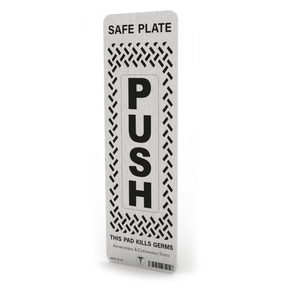 - Antibacterial aluminium push plate for push doors and existing push plates to prevent the spread of bacteria in your building or workplace.
