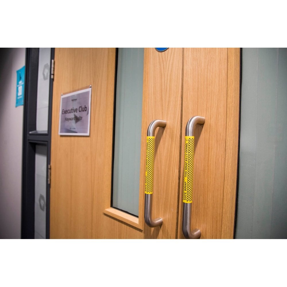 Install Safe Wrap to help reduce the risk of cross contamination in your area. The VERACO SAFE WRAP ™ has been designed to wrap around larger, up to 30 mm diameter, pull door handles. Pull doors are a common feature of modern day life. We see them nearly everywhere! It’s impossible to clean surfaces in-between every single user especially in high traffic areas. Just simply use the self adhesive backing to position securely on any surface.