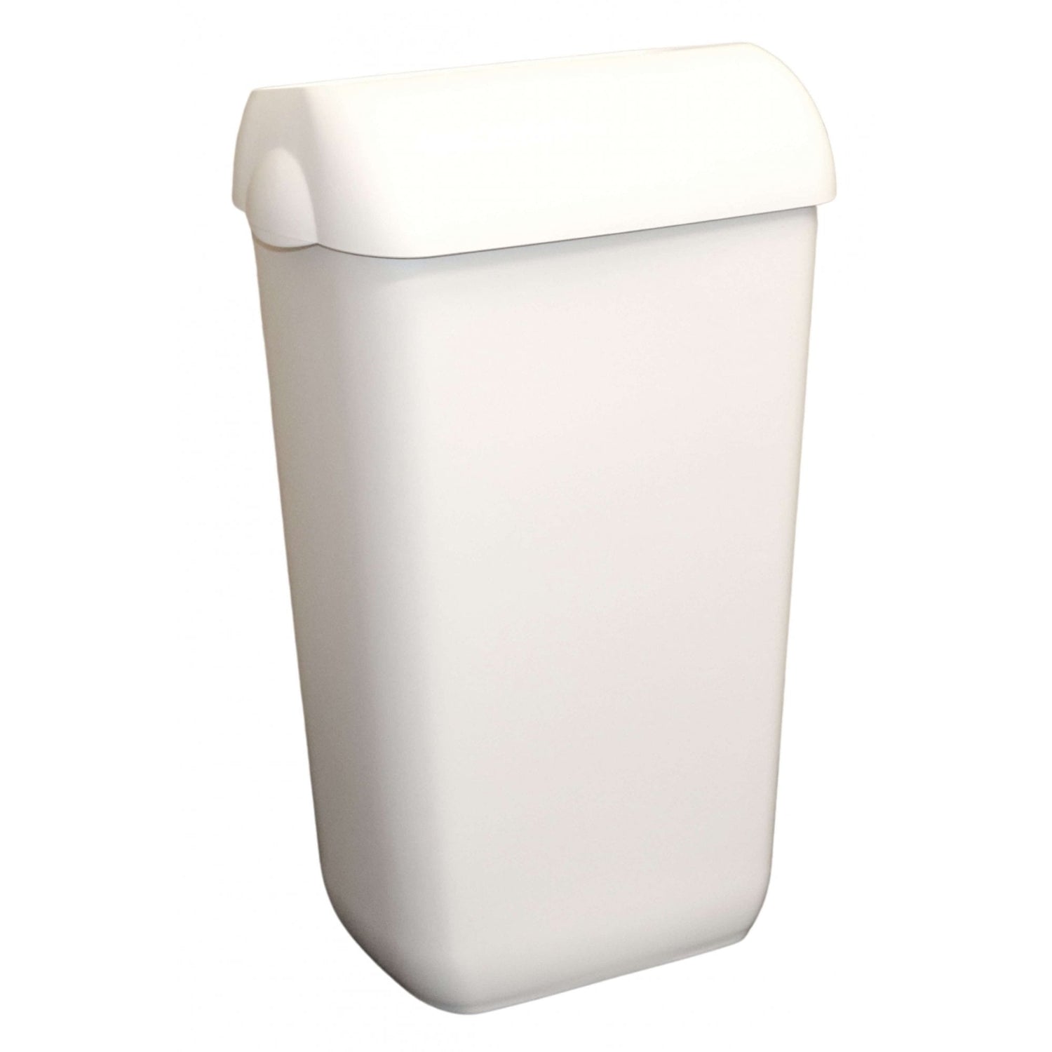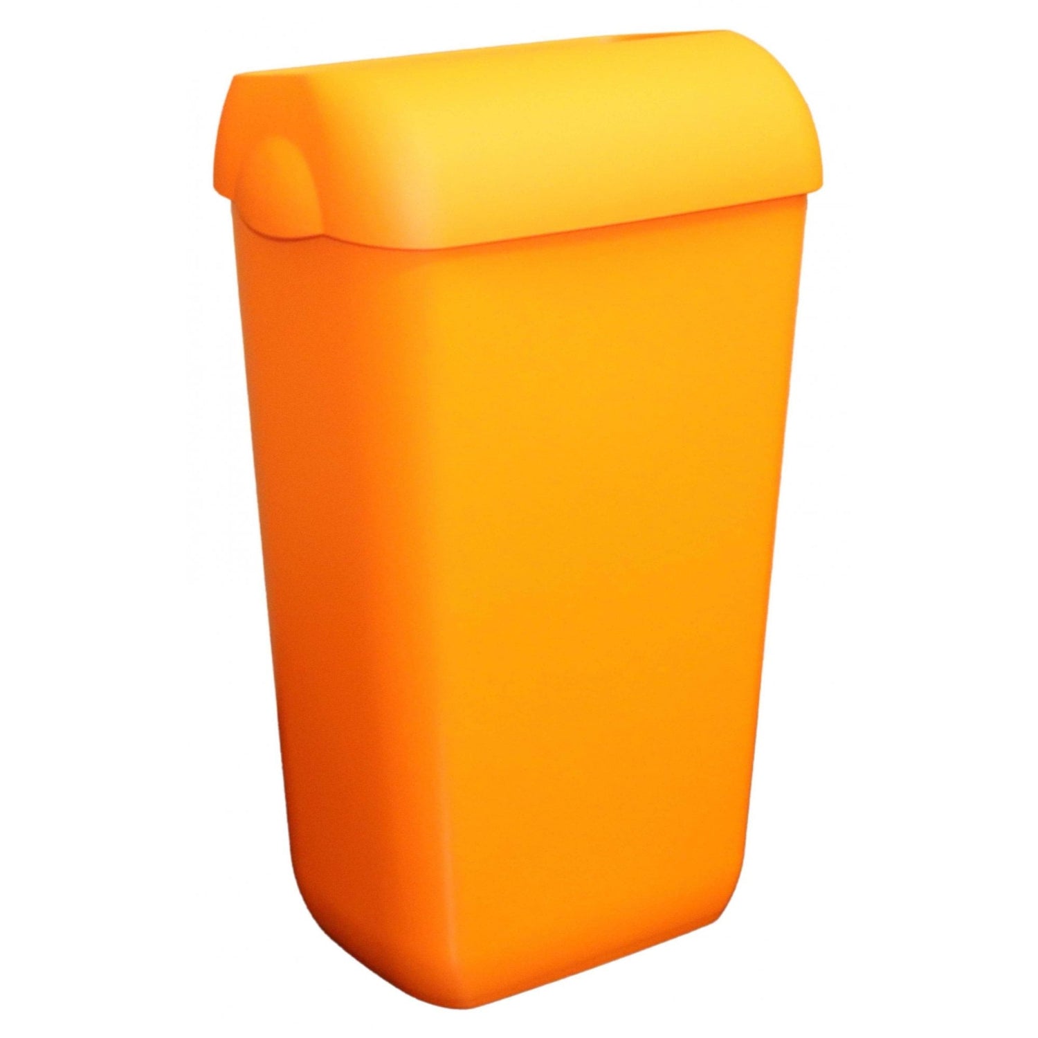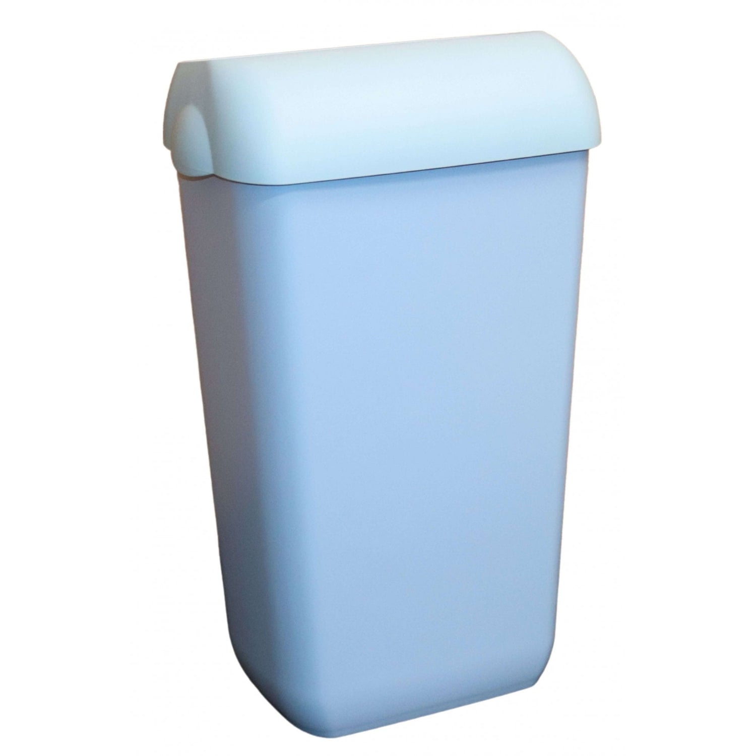 742 waste bin for commercial bathrooms can floor stand or be wall mounted thanks to the wall supports and anchors included. With a capacity of 23 litres, this durable plastic receptacle will match the colour of the Soft Touch range of washroom accessories available not only in black but also in other five finishes (blue, green, brown, orange and white).