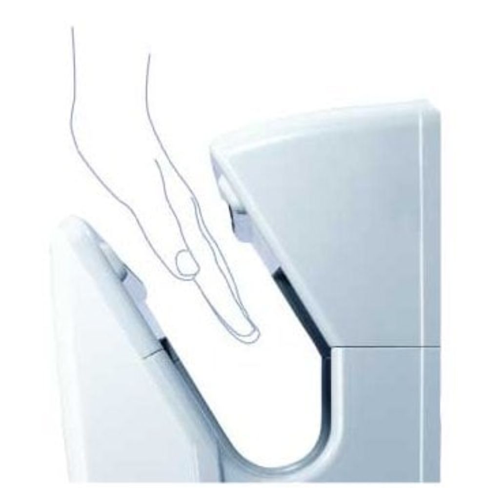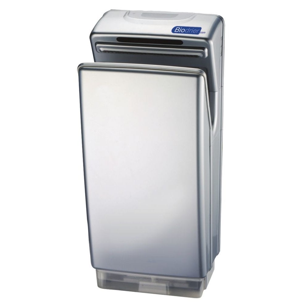 The Biodrier business uses recycled heat from the highly energy efficient (850 watt) digital brushless motor to produce two sheets of warm air that remove moisture from the hands. Most blade hand dryers are rated at around 1.6kw, so although this is not among the fastest in the class it is one of the most efficient, whilst still being sufficiently effective.