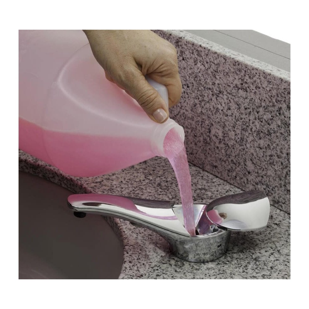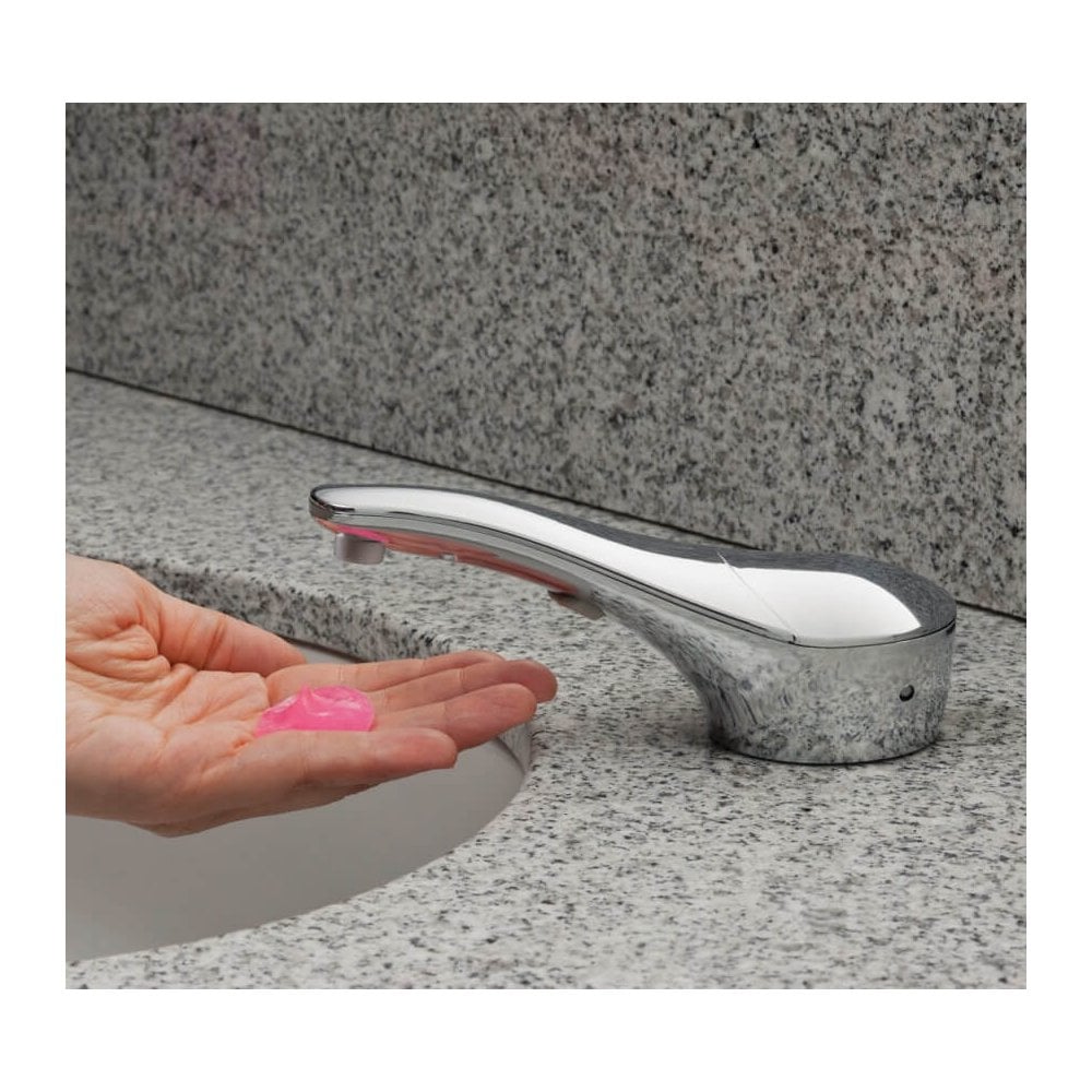 The SureFlo® touchless soap dispenser with 1 litre capacity has a vandal-proof 180º rotable lid to quickly refill from top, a portion control knob to adjust the dispense amount (from 0.4 to 3ml), a flush button for periodical maintenance and compatibility with universal bulk liquid soaps (from 100 to 19,000cP) that can be a more affordable solution than refill cartridges in the long term. The electrical components are made of water resistant materials. Furthermore, the different types of plastic in the rest of the parts will resist corrosion. To extend the service life of this item, use chloride-free and pH-neutral liquid soaps (never alcohol-based or iodine-based).