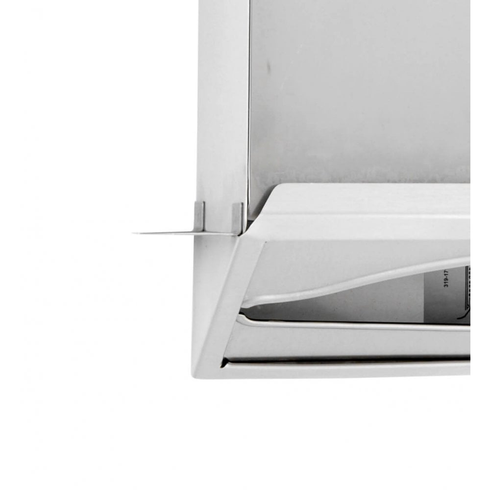 Bobrick B-318 concealed paper towel dispenser is designed for installation in a wall prior to installation of a surface-mounted mirror like B-290 (not furnished), requiring little space and ideal for minimalist commercial washrooms. The manufacturer recommends to locate it between two lavatories or a non-mirror side wall where disabled users may need access. With all-welded stainless steel build, this behind mirror paper towel dispenser comes equipped with two self-closing piano-hinged panels. The unit can store up to 600 C-fold or 800 Z-fold paper towels, without any need to use adapters. For the easiest replenishment, staff will only have to push the paper towels from bottom up through the the tray panels.