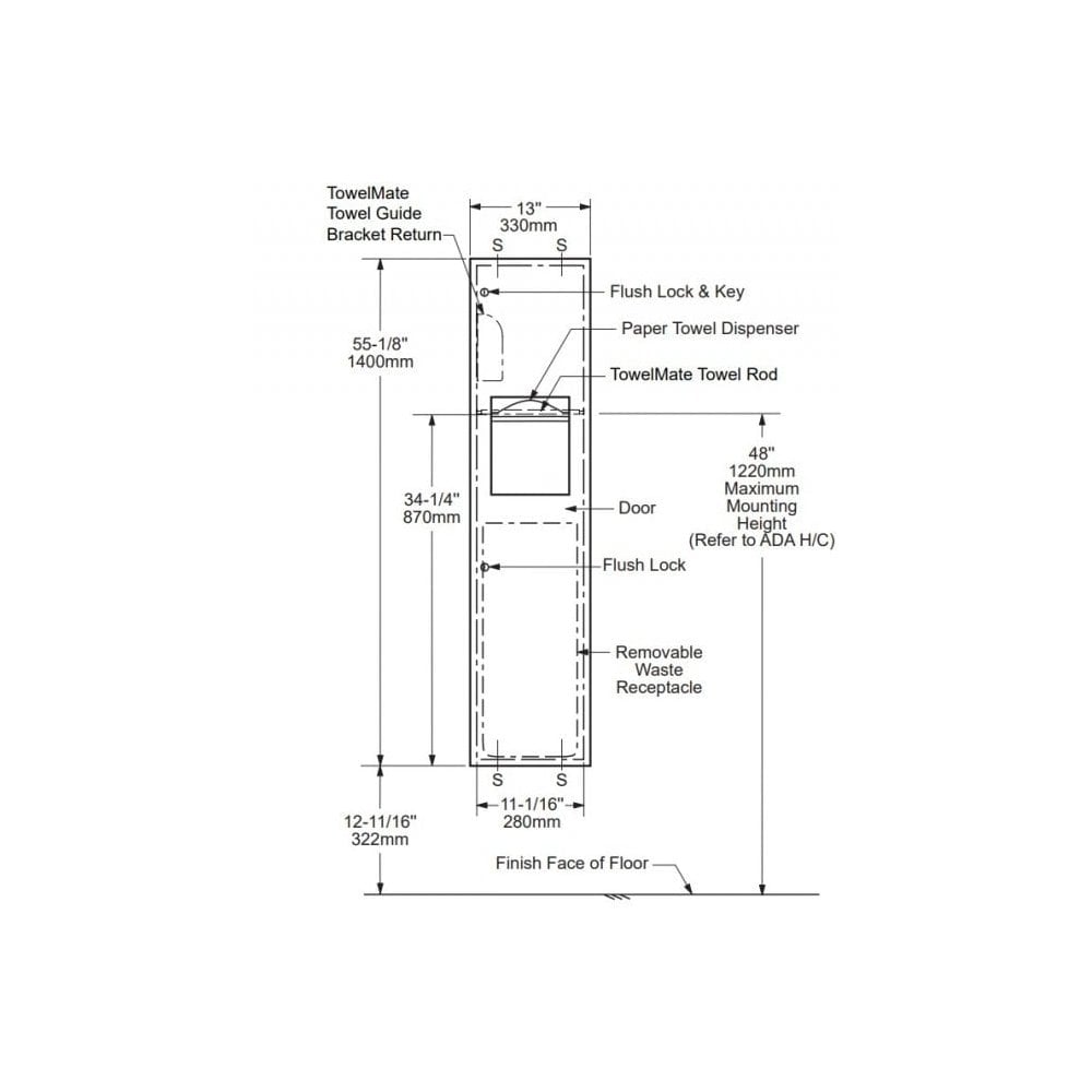 B-3803 Trimline Recessed 2-in-1 Paper Towel Dispenser and 24L Waste Container