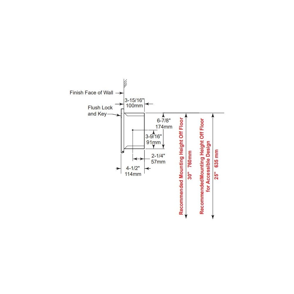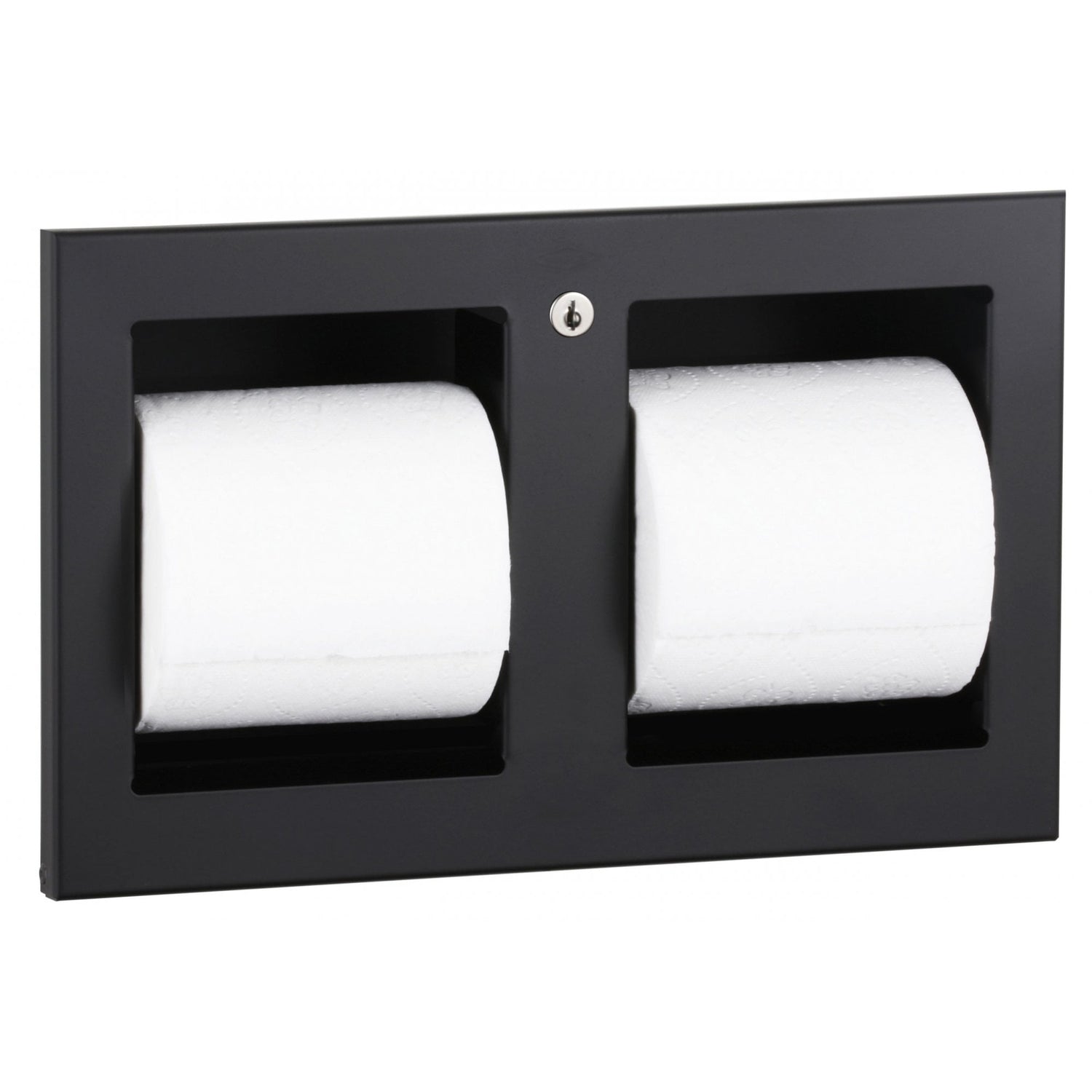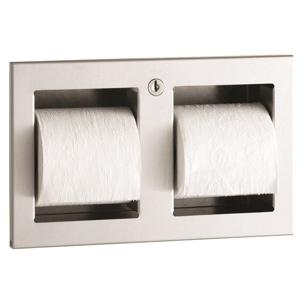 This is a recessed toilet roll holder from Bobrick and is available in either a matte black powder coated finish or brushed satin, both are stainless steel units with all-welded construction. It's 304 grade stainless steel build ensures a resistance to corrosion as well as strength. The toilet roll holder comes with a lock to prevent theft. A recessed fitting keeps the dispenser looking smart and stylish, ideal for high finish washrooms as well as those without the luxury of space. For more info, please refer to the spec sheet provided below.