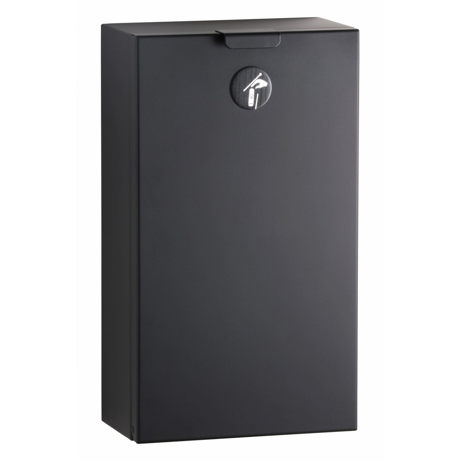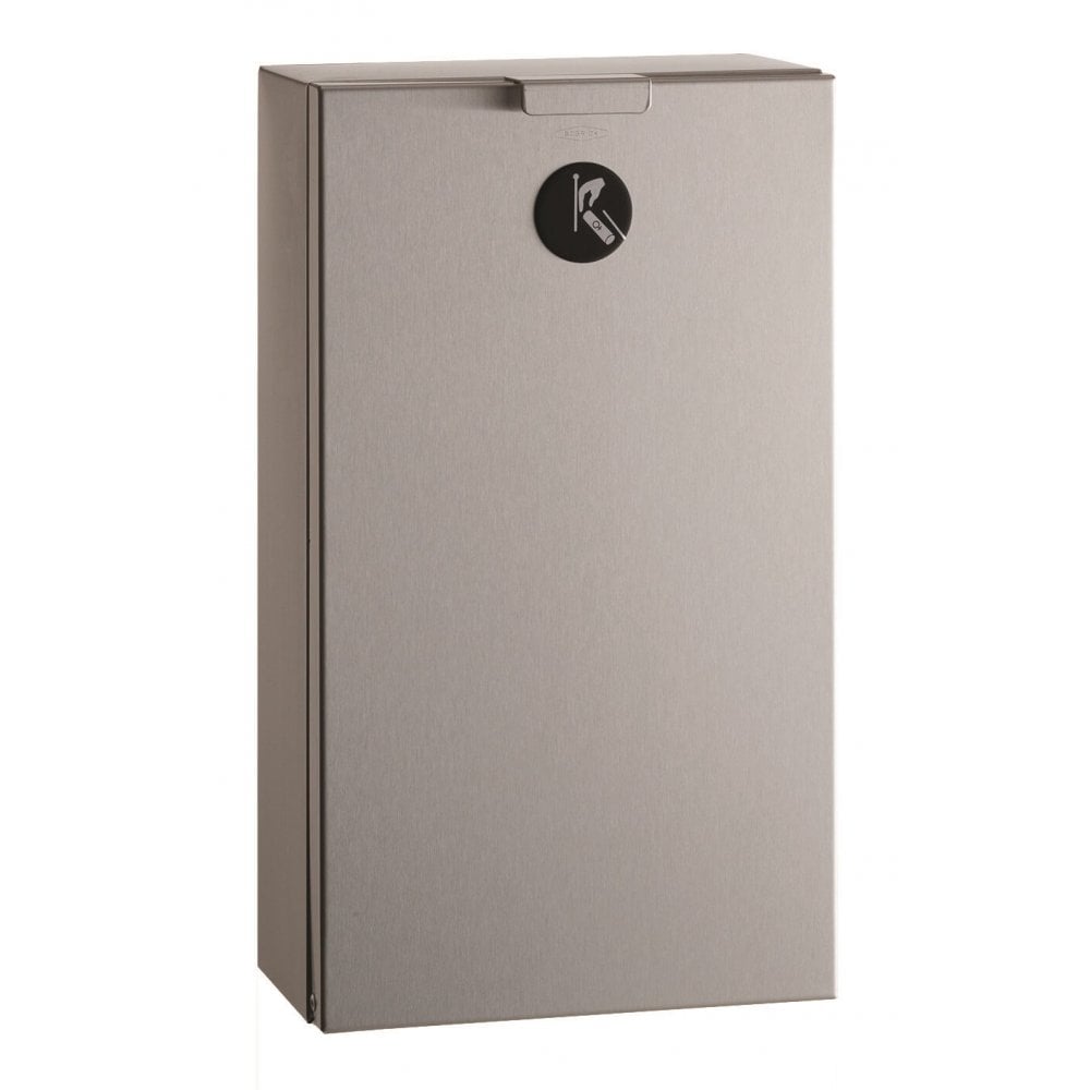With parts completely made of stainless steel, B-35139 is a durable sanitary disposal unit with useful elements like a magnetic catch and door swing cable to prevent harm on the wall or other accessories. Bobrick's TrimLineSeries gives a minimalist layout in a soft satin finish ideal for contemporary toilet cubicles. To empty the 2.3L container, maintenance staff just unlatch the door and remove the receptacle. The door is secured to cabinet by two rivets. Note that we can supply as well a replacement for the skirt (35139-53) or the waste deposit (35139-78).