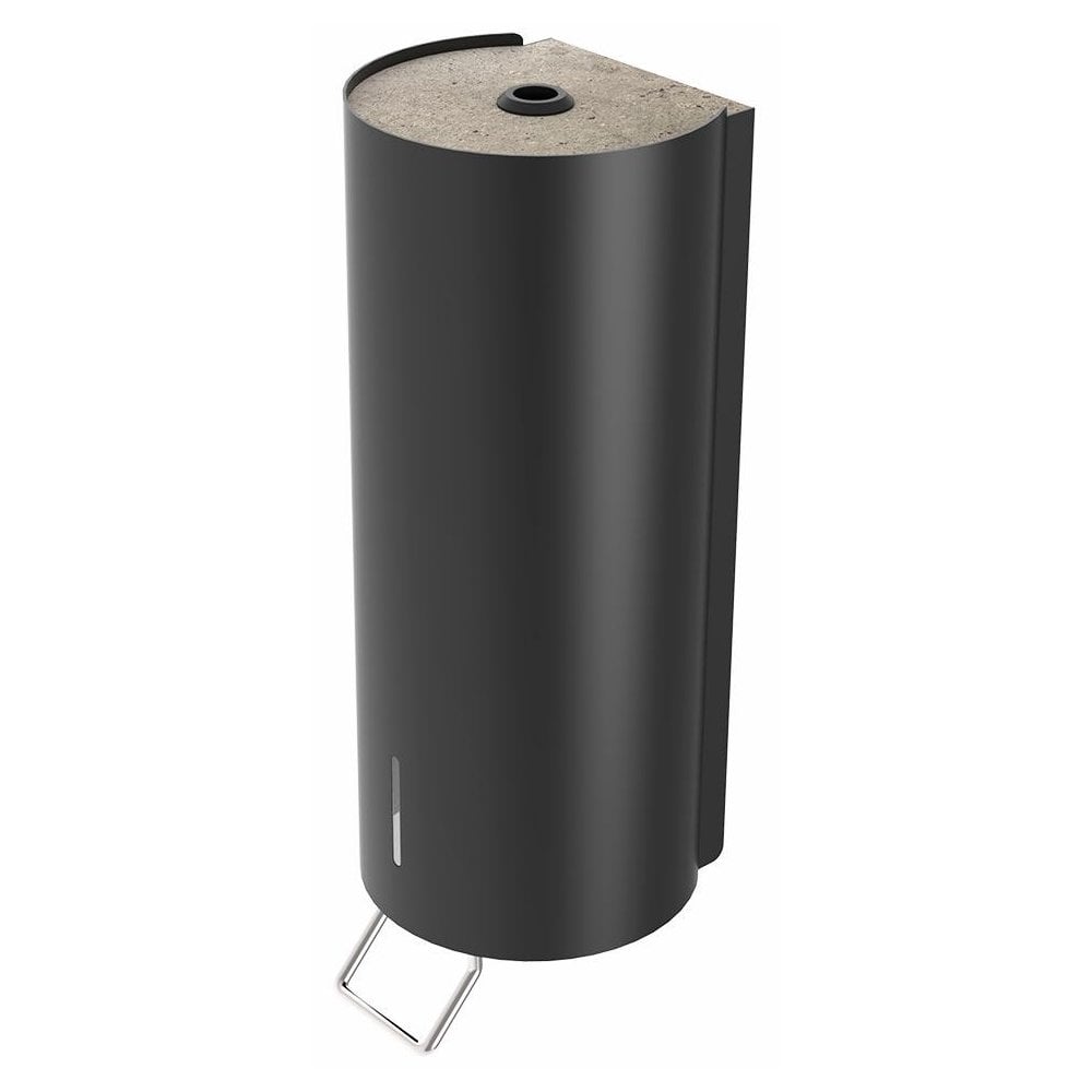 The foam soap dispenser is made out of powder-coated stainless steel and comes with a refillable soap container holding 1.2 l. Dosage is activated by pressing the dosage lever slightly backwards. Access to the internals of the dispenser is only possible with a special key fitting all Björk products.