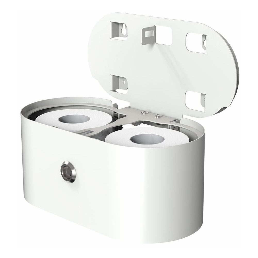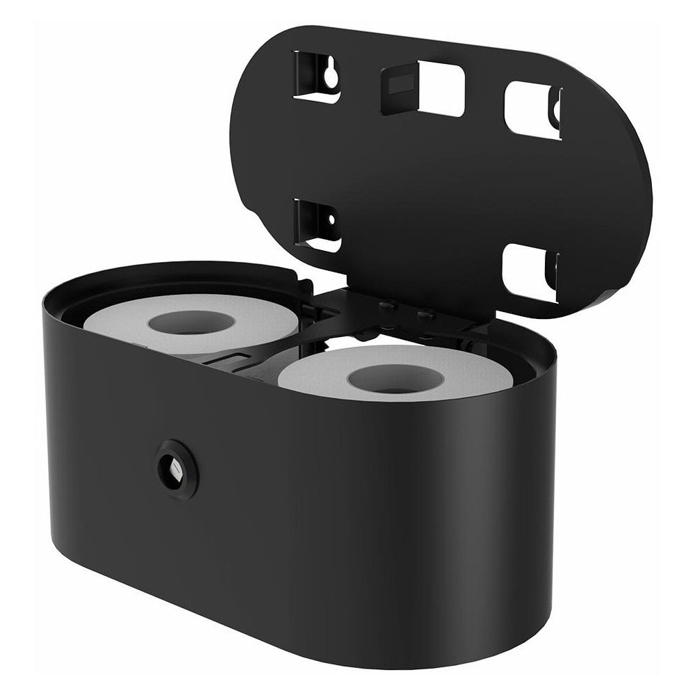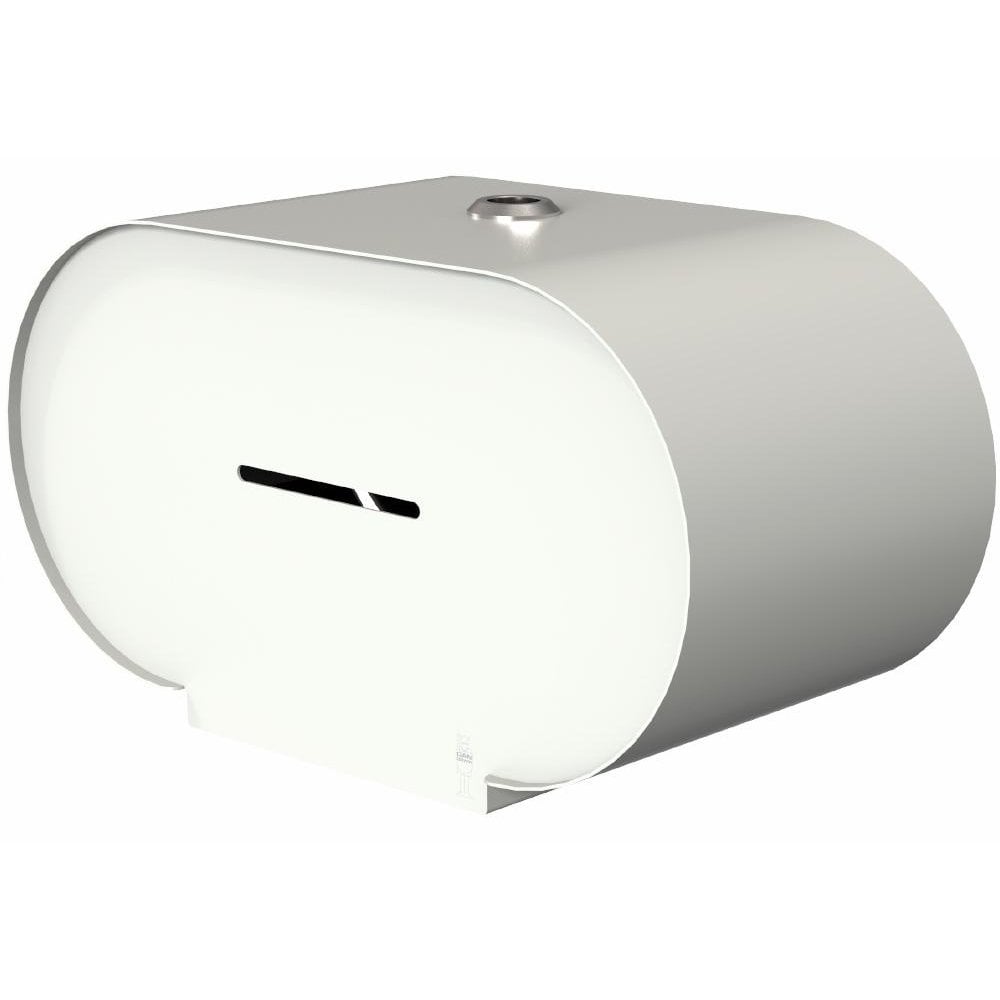 BJÖRK, a true breakthrough in commercial bathroom products. The double toilet roll holder is ideal for low to medium traffic washrooms. It has a contemporary, space-saving design that matches the latest range of DAN DRYER’s bathroom equipment. The dispenser holds 2 standard toilet rolls placed side-by-side. Designed for quick reloading, this unit also has a wide viewing slot so users can see when it is time to restock the dispenser. Manufactured from powder coated stainless steel and available in either a matte black or white finish. Comes standard with lock and key to help prevent theft.