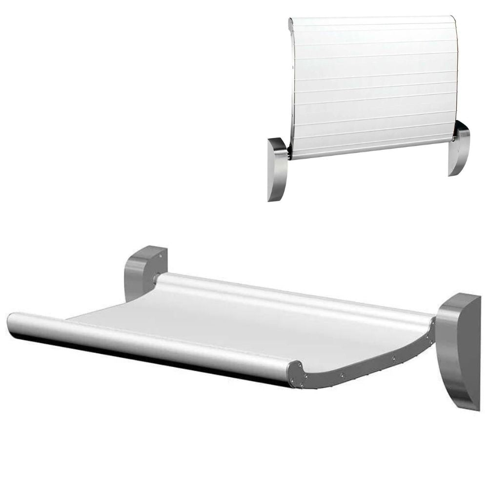 A gas spring in each wall mounting provides the user with an easy opening and closing of the baby changing station. 660 comes standard in a white paints finish. 659 is an alterative, is available and includes a safety strap for the infants safety. For more information, please refer to the spec sheet provided below in the download section.