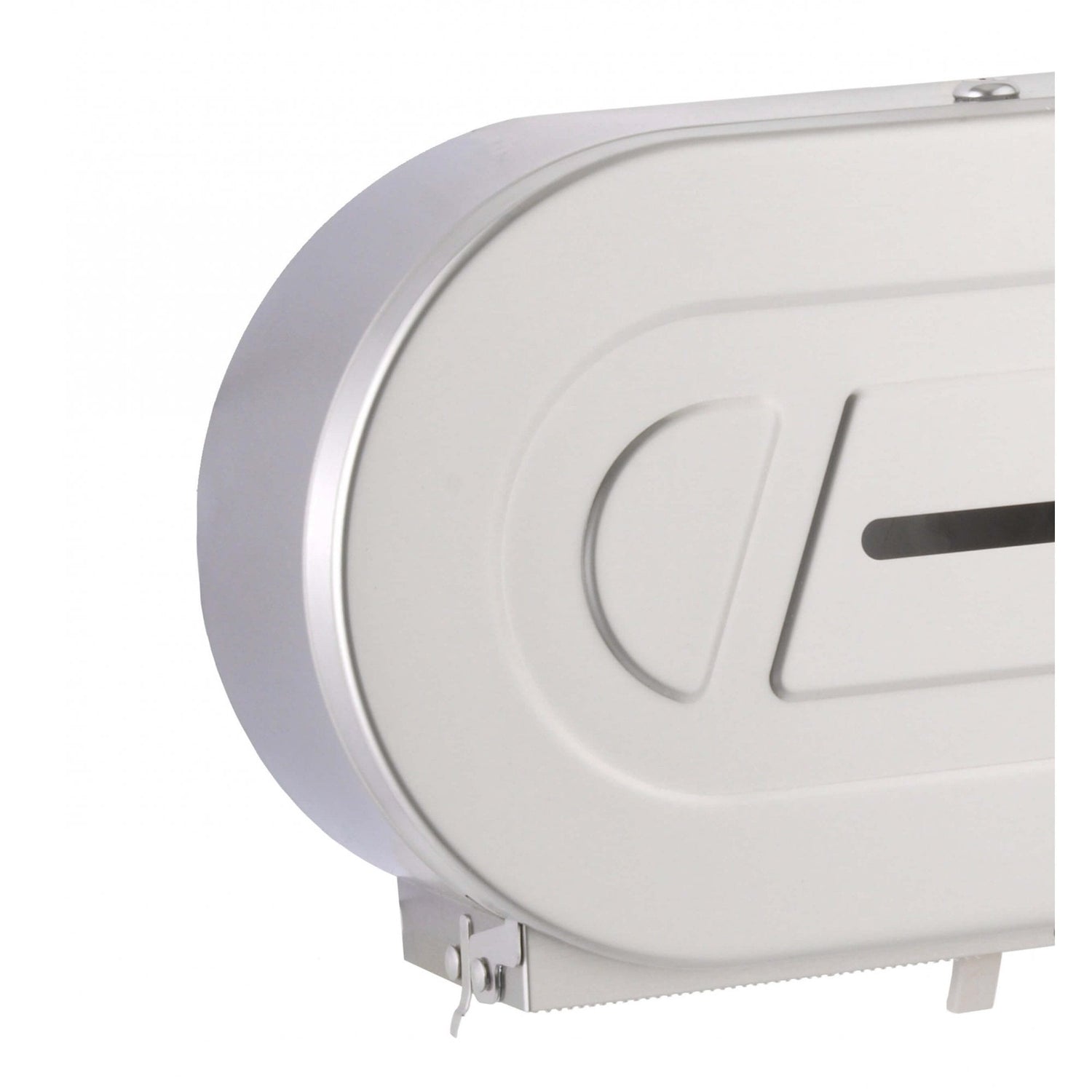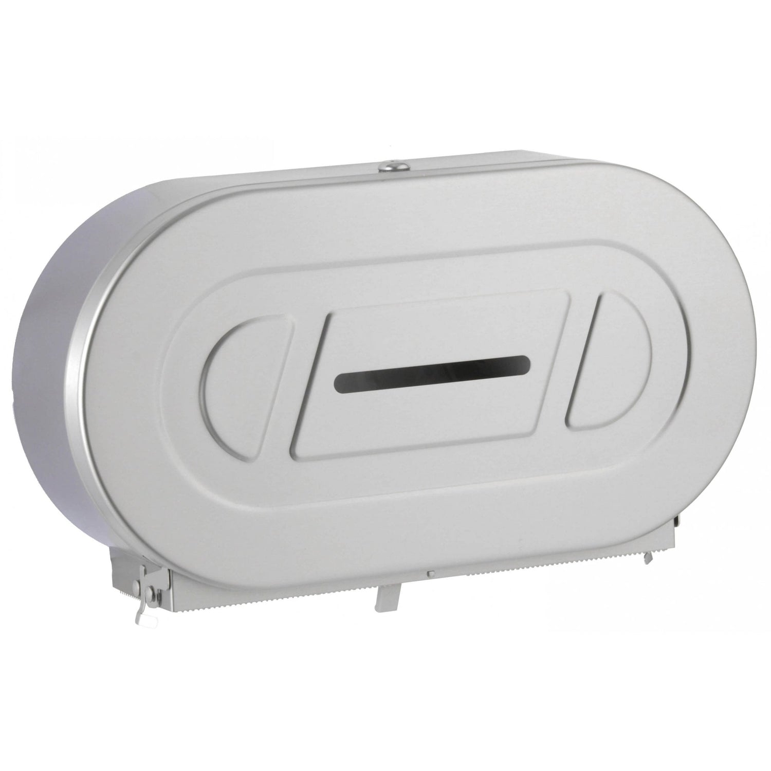 This twin toilet roll holder is a great solution for medium and high duty commercial washrooms, since it can store two rolls up to 255mm diameter, although dispensing only one at a time in order to save paper. B-2892 assures low, quick maintenance: a slot shows the content, switching rolls requires just moving a lever and reloading is as easy as opening the door and placing the new roll in its spindle. The spindles are convertible so that they can accommodate toilet rolls with 57mm or 76mm diameter core. The stainless steel in the body and the high-impact ABS of the mechanism lend durability. Also, the top locking system avoids vandalism.