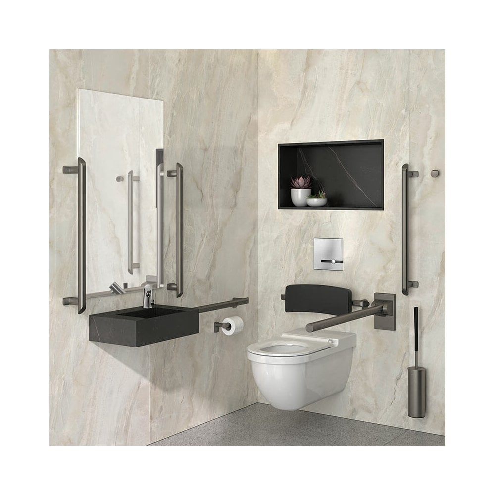 An innovative design for all, the Be-Line® DOC M grab bar Ø 35mm is for people with reduced mobility and can be used as a handrail or grab bar for WCs, showers or baths. The 3mm thick aluminium tube comes in a Matte white or Metallised anthracite grey powder-coating which provides a good visual contrast with the wall.