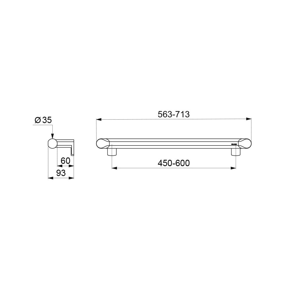 The 60mm gap between the bar and the wall gives minimal space to prevent the forearm from passing between the bar and the wall, reducing the risk of fracture in case of loss of balance.
