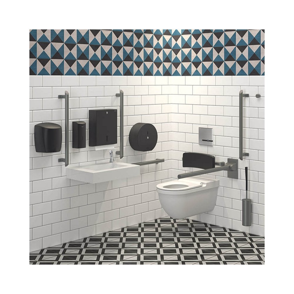 An innovative design for all, the Be-Line® DOC M grab bar Ø 35mm is for people with reduced mobility and can be used as a handrail or grab bar for WCs, showers or baths. The 3mm thick aluminium tube comes in a Matte black, Matte white or Metallised anthracite grey powder-coating which provides a good visual contrast with the wall.