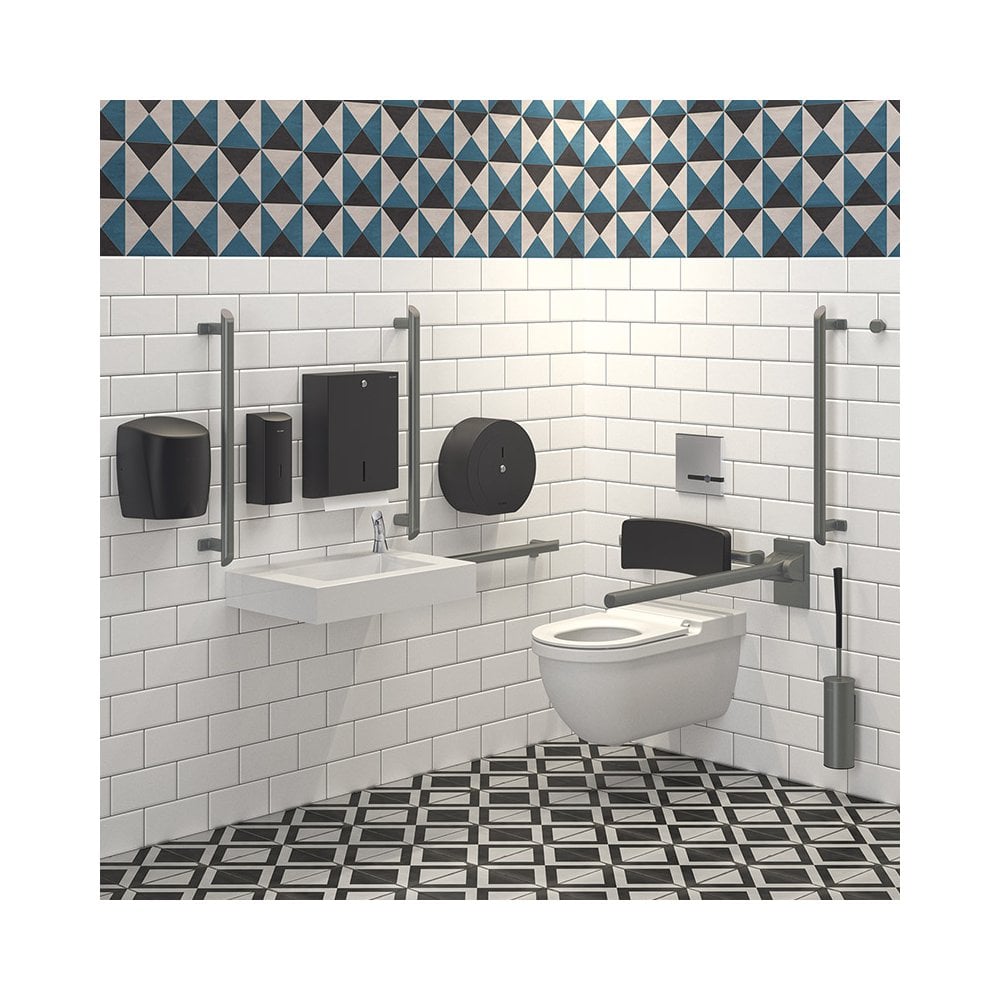 Grab Bar package for Doc M compliant Unisex Washroom. Meet Document M requirements. Rounded profile with an ergonomic flat front face that prevents rotation for optimal grip and comfort.