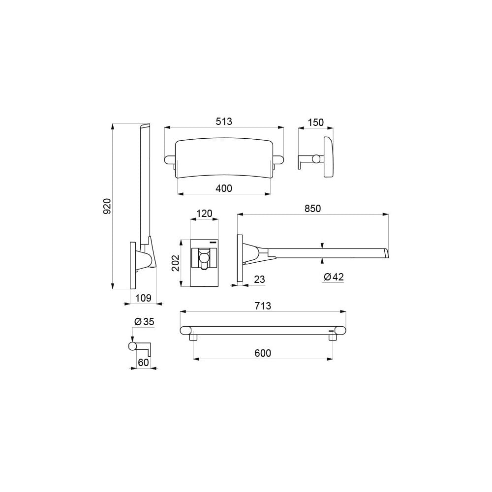 - 1 x Be-Line® comfort backrest for WCs, depth 150mm (551928)