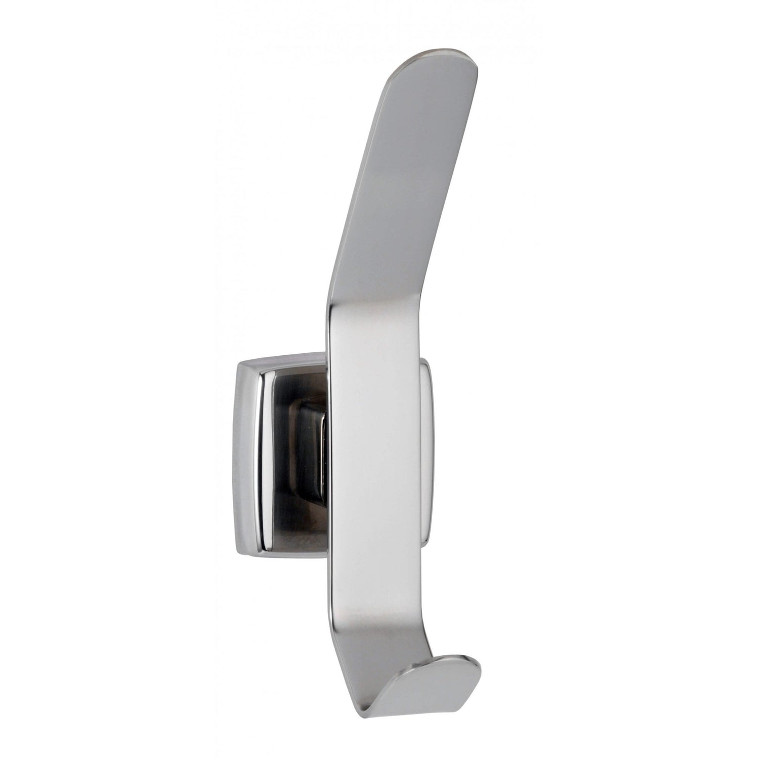 Bobrick hat and coat hook in a bright polished finish offers two hanging points for clothes and accessories (bags, scarves) at commercial areas with contemporary layout like public toilets, restaurants or hotels. The wall plate must be fixed to a surface by two screws (furnished) and then secured by one setscrew to the rounded square flange and support arm, which comes welded to the hook. For an added peace of mind, its stainless steel manufacture guarantees durability and vandalism resistance.