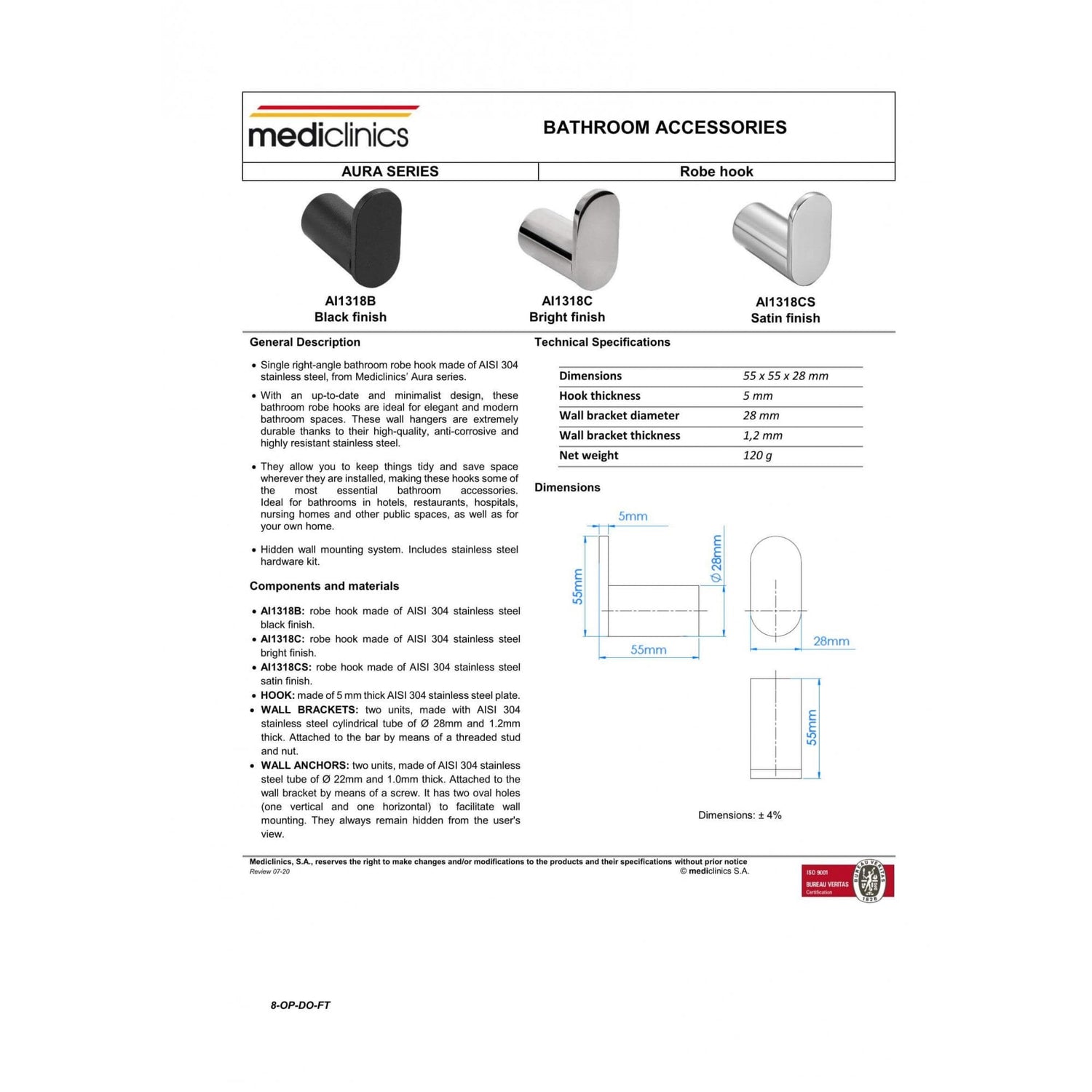 Mediclinics Robe Hook - Brushed Satin is backordered and will ship as soon as it is back in stock.