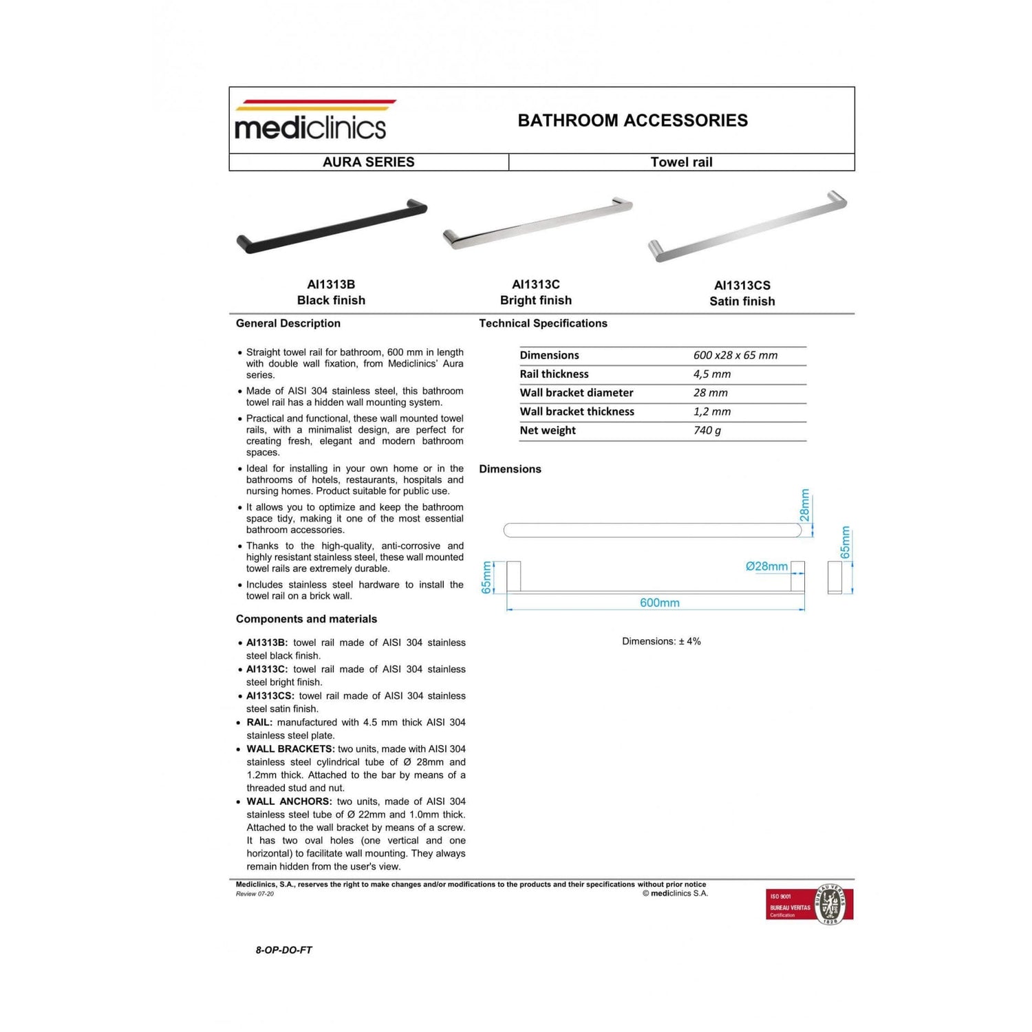 Mediclinics Bathroom Towel Rail - Brushed Satin is backordered and will ship as soon as it is back in stock.