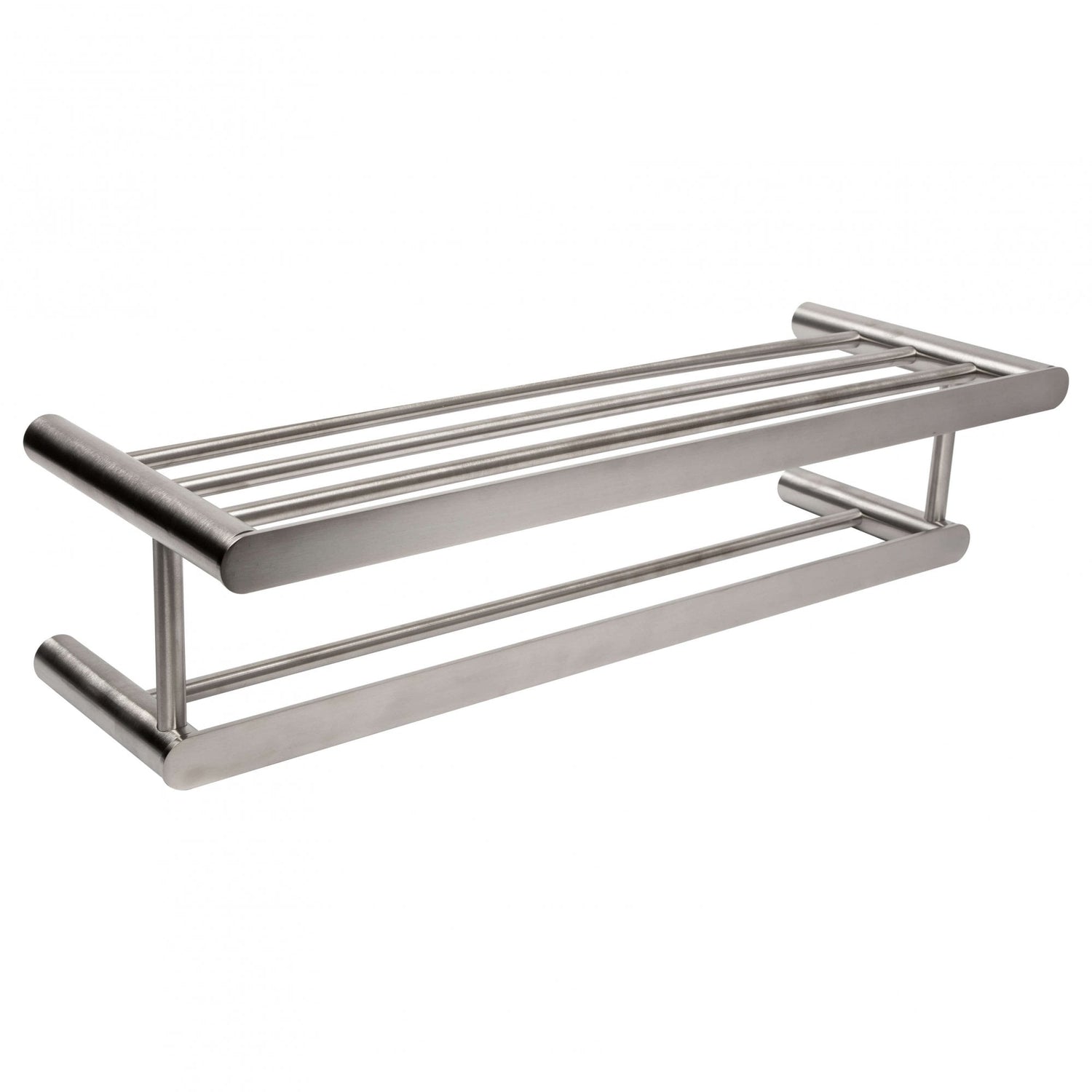 The bathroom towel rail with shelf brings an elegant and creative feel to the bathroom. With an up to date design made of high durable, anti-corrosive stainless steel and featuring a hidden wall mounting design, this product is perfect for all public and private locations. Hardware for wall installation is provided.