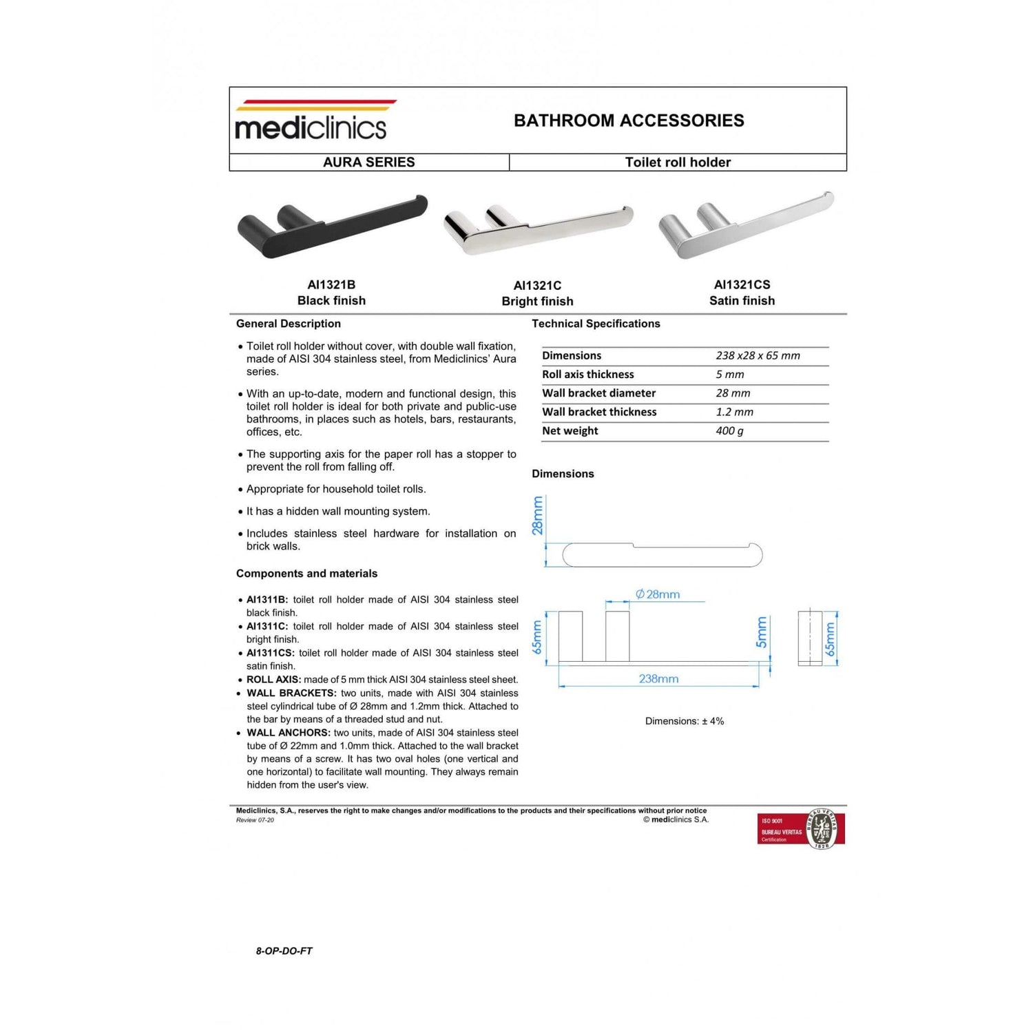 This toilet roll holder is ideal for pubic-use or private bathrooms with an easy to install and hidden wall mounting system. The support has a stopper to prevent the roll from falling off during use and hardware is included in this product to allow ease of installation onto the designated wall.