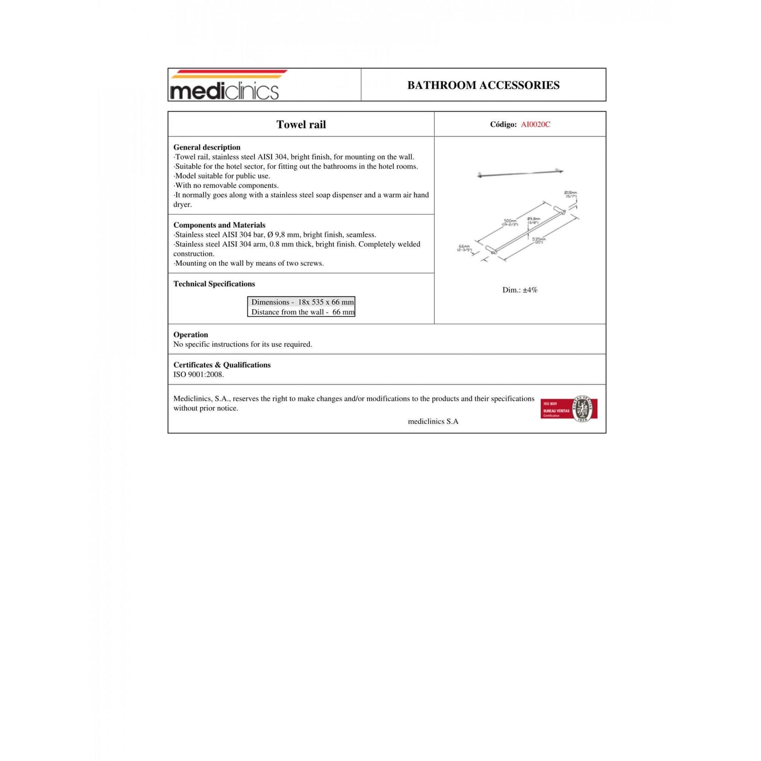 AI0020 Mediclinics Medinox Series AISI 304 Stainless Steel Wall Mounted Towel Rail