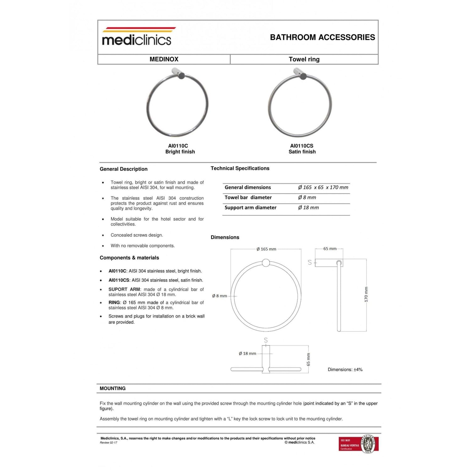 AI0110 Mediclinics Medinox Series AISI 304 Stainless Steel Towel Holder Ring