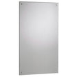SPECIFICATION: Frameless stainless steel mirror shall be 18-8, type-304, 20-gauge (0.9mm) stainless steel polished to a No. 8 mirror finish. Mirror shall have 1/4" (6mm) return concealing 1/4" (6mm) tempered masonite backing. Four corner countersunk holes provide flush fit of mounting screws with mirror surface.