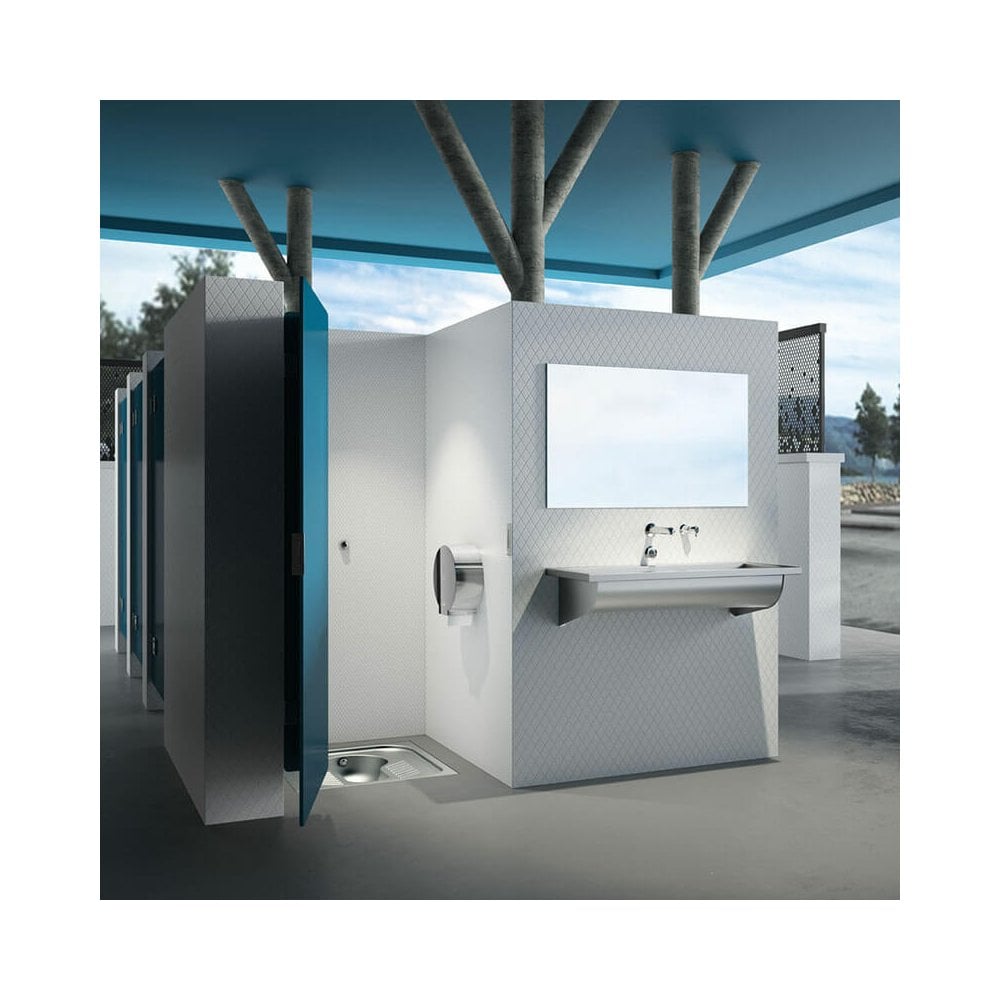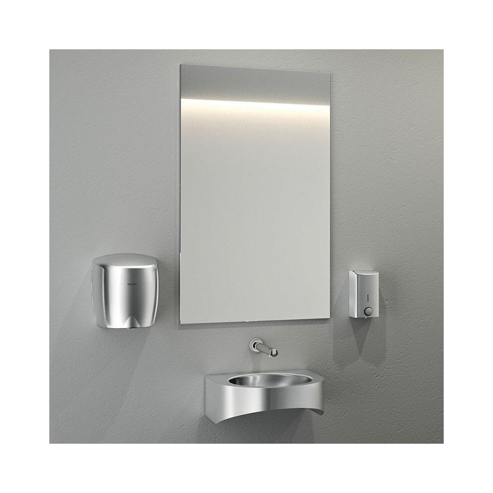 - Wall-mounted "mirror" polished bacteriostatic 304 stainless steel rectangular mirror.