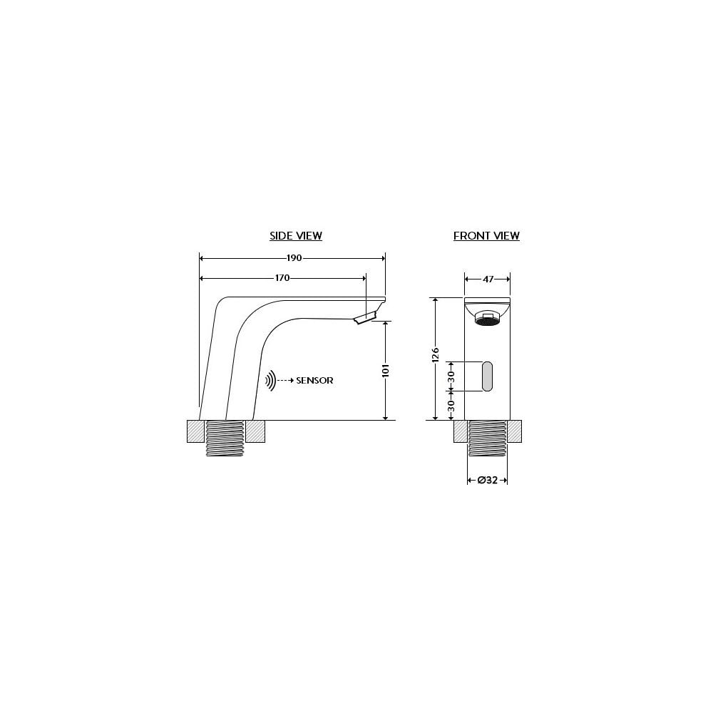 - Dimensions: H126mm x W47mm x D190mm (150mm spout projection)