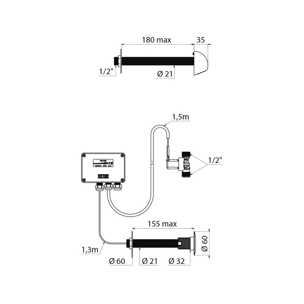 The DELABIE TEMPOMATIC is an automatic shower kit available in an chrome plated solid brass finish. 452159 requires a mains supply of 230/12V, with power supply by electronic unit with a solenoid valve measuring ½". The TEMPOMATIC has to operation modes available to the user. Firstly, an automatic experience with activation through presence detection. Secondly, a voluntary ON/OFF activation by passing hand in front of sensor (~100mm detection distance). The time flow of the water flow can be adjusted between 30 and 60 seconds. A time flow shower will prevent water waste, with a saving of up to 80% when compared to a conventional shower. The flow rate is set to 6 lpm per 3 bar. Automatic operation makes this unit suitable for people with reduced mobility and ideal for installation in high finish washrooms. Includes a scale resistant round shower head and an automatic flow regulator. Threaded rods can be cut to size. It's wall plate is flush to the wall. For more information, please refer to the spec sheet provided below in the download section.