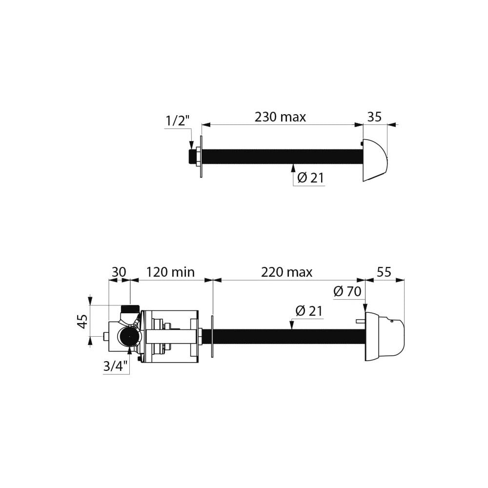 The DELABIE TEMPOMIX time flow shower kit is available in an chrome plated brass finish. 796209 has been manufactured for cross wall installations of ≤ 220mm. It will shut off ~30 seconds after the button has been pressed to prevent water waste, with a saving of up to 80%. The flow rate is set to 6 lpm per 3 bar. A soft touch operation makes this unit suitable for people with reduced mobility and ideal for installation in high finish washrooms. Includes a scale resistant nozzle and an automatic flow regulator. Connector is a TEMPOMIX ¾" single control mixer. The maximum temperature can be adjusted by the installer to suite requirements.  For more information, please refer to the spec sheet provided below in the download section.