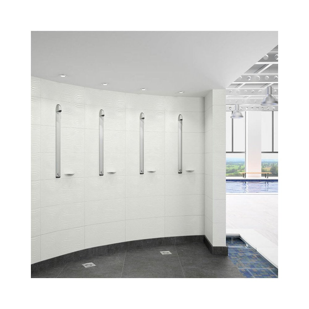 - Tamperproof, scale-resistant fixed shower head with automatic flow rate regulation.
