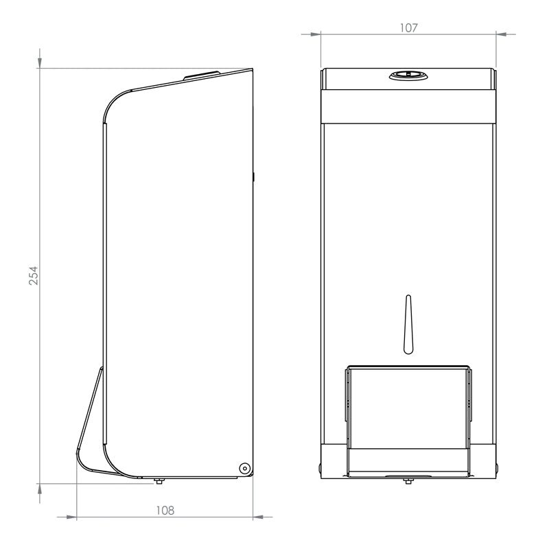 • Dimensions: 254 (H) x 107 (W) x 108 (D) mm
