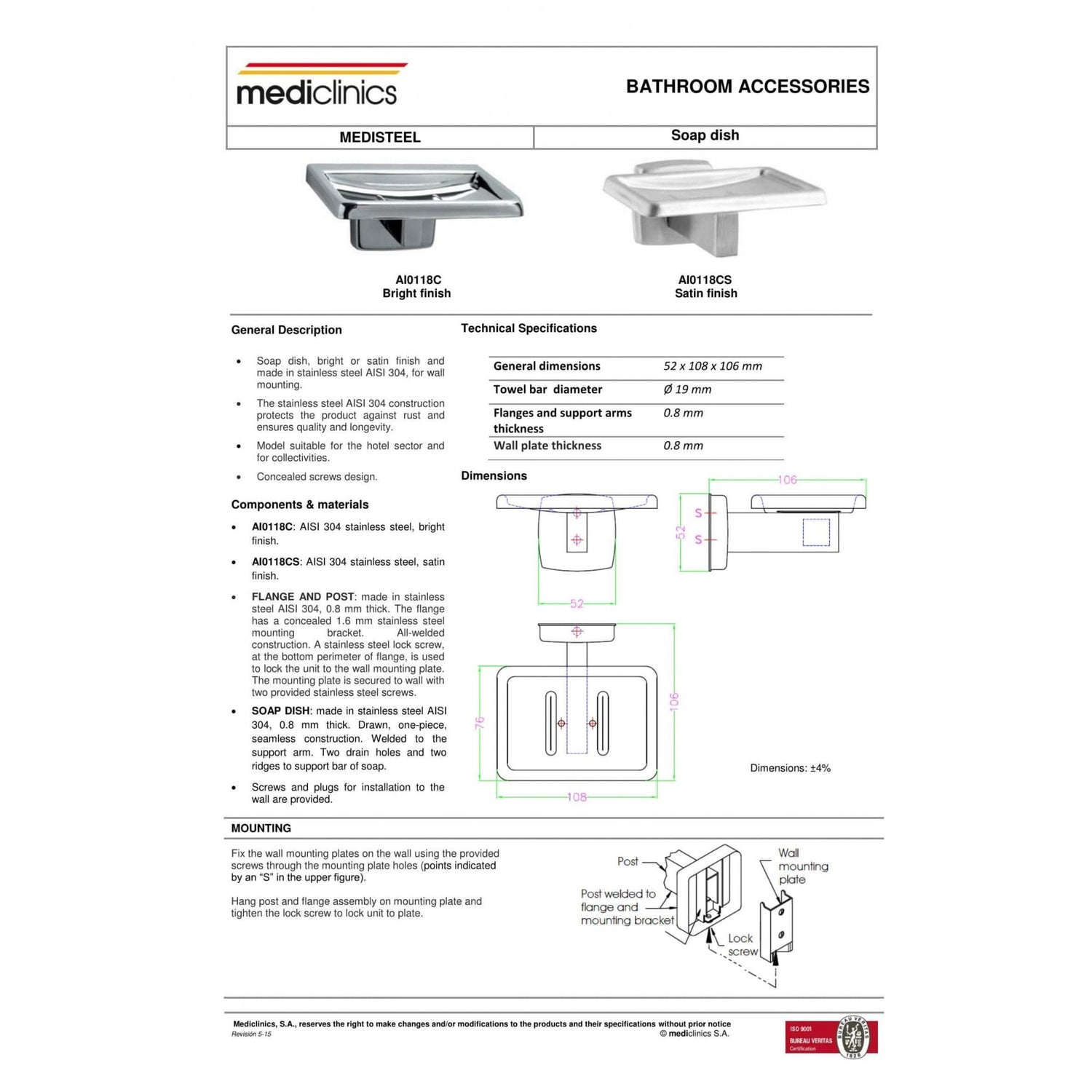 Mediclinics Stainless Steel Soap Dish - Brushed Satin is backordered and will ship as soon as it is back in stock.