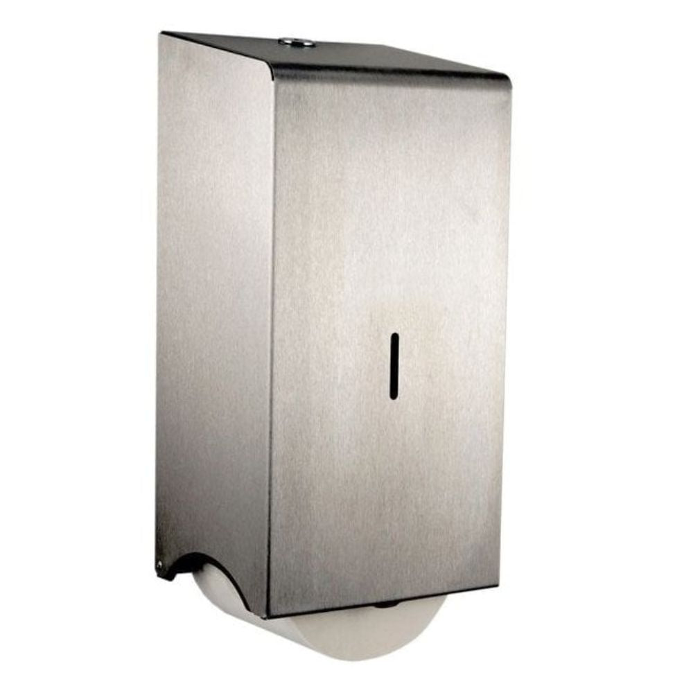 Due to the slim design, this Vivo twin toilet roll holder can store any two corematic rolls without requiring much space. Its minimal layout, in a brushed satin stainless steel, will fit the finest washrooms, guaranteeing at the same time durability and resistance to vandalism. Once the first roll is finished, the second falls into place instantly, so IFS044MBS is an ideal solution for medium traffic areas.