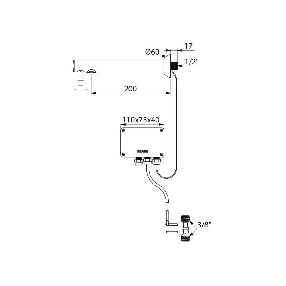 This recessed electronic basin tap from DELABIE comes available in a polished chrome finish. 379ENC comes with an independent IP65 electronic control unit and operates using a 230/12V mains supply with transformer. The flow rate is pre-set at 3 lpm at 3 bar, however, can be adjusted from 1.4 to 6 lpm. Scale-resistant flow straightener. Adjustable duty flush (pre-set flush ~60 seconds every 24 hours after last use). Active, infrared presence detection, sensor at the end of the spout optimises detection and will allow for a touch free experience. Filter and solenoid valve M3/8". This unit comes with a chrome plated brass body. Recessed installation. Anti-blocking safety. Spout with smooth interior and low volume of water (limits bacterial niches). Suitable for people with reduced mobility. 10-year warranty. For more info, please refer to the spec sheet available in downloads.