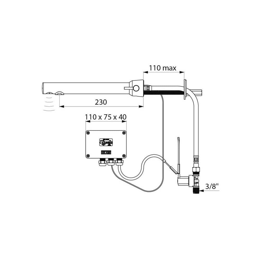 This recessed electronic basin tap from DELABIE is available in a polished chrome finish. 379MCH comes with an independent IP65 electronic control unit and operates using a 230/12V mains supply with transformer. The flow rate is pre-set at 3 lpm at 3 bar, however, can be adjusted from 1.4 to 6 lpm. Scale-resistant flow straightener. Adjustable duty flush (pre-set flush ~60 seconds every 24 hours after last use). Active, infrared presence detection, sensor at the end of the spout optimises detection and will allow for a touch free experience. Filter and solenoid valve M3/8". This unit comes with a chrome plated brass body. Anti-blocking safety. Suitable for people with reduced mobility. 10-year warranty. For more info, please refer to the spec sheet available in downloads.