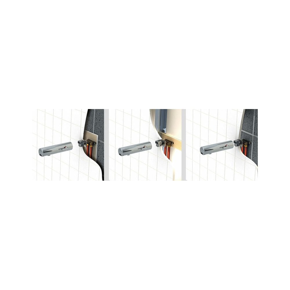 The DELABIE TEMPOMATIC wall mounted electronic mixer tap is available in a chrome plated stainless steel finish. A mains supplied version of the tap is available (493500) as well as a battery operated (493506). 493500 requires a 230/6V recessed mains supply, whereas 493506 comes included with an integrated 123 6V lithium battery. 493500/493506 provides a touch free experience thanks to its infrared sensor (placed at the front of the tap to optimise detection) and automatic on/off. The flow rate of the tap comes pre set at 3lpm at 3 bar, which could save upwards of 90% on water. The flow rate can be adjusted from 1.4lpm to 6lpm if required. The recessed inlets measure 1/2". 24 hours after being used, the tap will perform a duty flush, prevent stagnant water and promoting a healthier washroom. For more information, please refer to the spec sheet provided below.