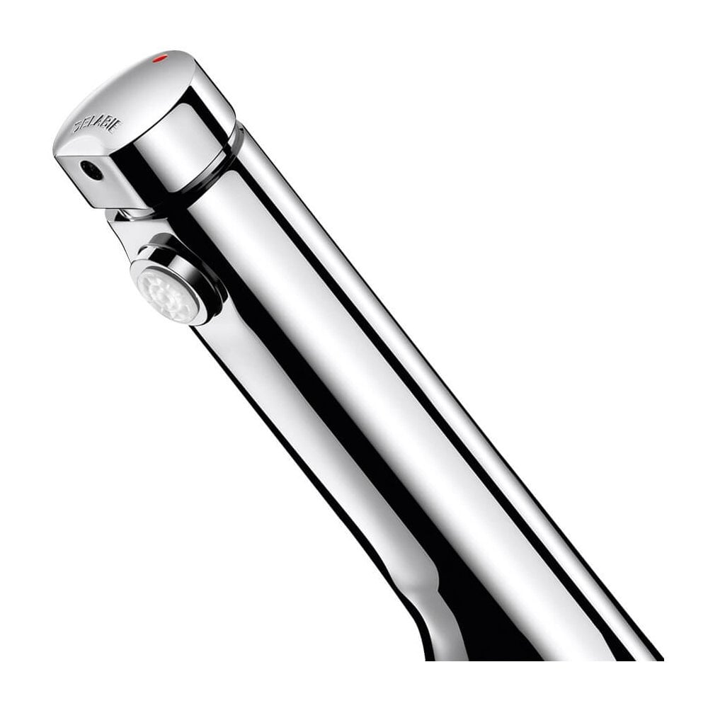 The DELABIE TEMPOSOFT 2 deck mounted time flow tap is available in a polished chrome finish, operating by use of a soft touch push button which has a ~7 second time flow, shutting the tap off when the time is up. This could lead to up to 85% in water savings. With a scale resistant aerator, the flow rate of the tap can be controlled and the end of the tap will prevent any mineral markings, keeping washrooms looking pleasant. A supply of blue and red markers can be used to mark taps hot or cold, depending on temperature determined at the source. The fixing is reinforced by the back nut with 3 stainless steel screws. For more information, please refer to the spec sheet provide below in the downloads section.