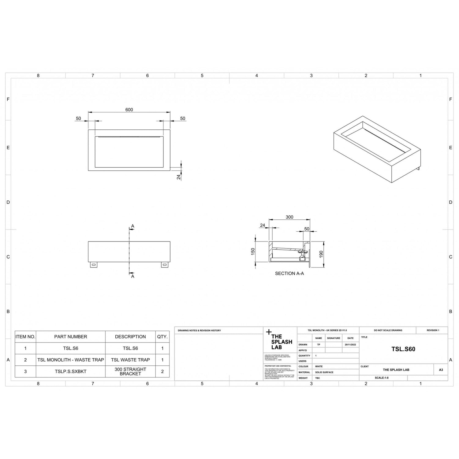 The Monolith Basin System can be quickly and easily installed by one trade with no on-site joinery. The modular steel bracket system is fixed to the wall. The basin then slides in and is held via an incredibly strong tab and bolt method.  This vastly speeds up the installation and reduces installation costs. It's as simple as (1)Align and fix brackets to the wall. (2)Align the Monolith and secure with bolts. (3)Connect pipework to the drainage funnel.