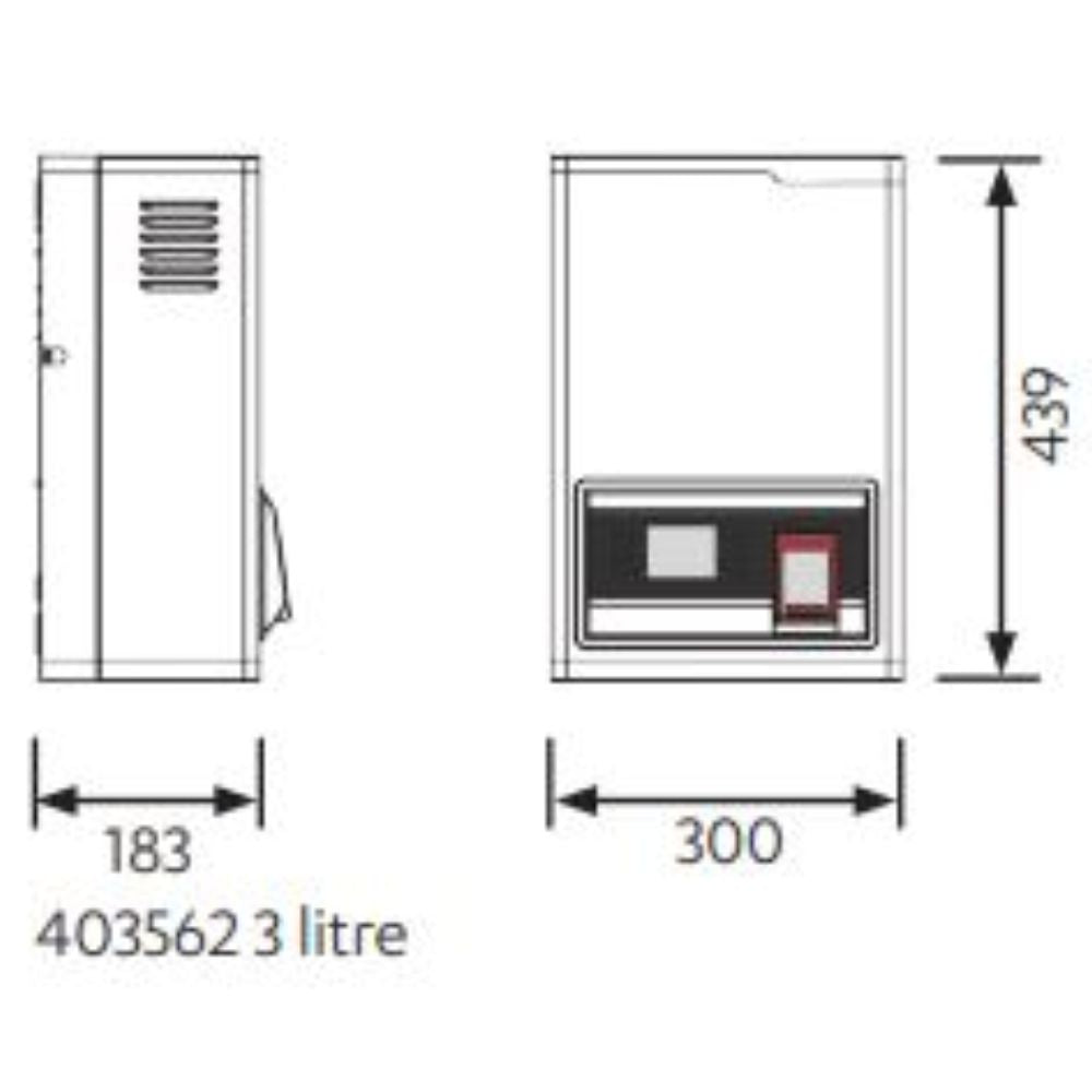 • 3 Litre Dimensions / Filled Weight: W300mm x D183mm x H439mm (12.5kg)