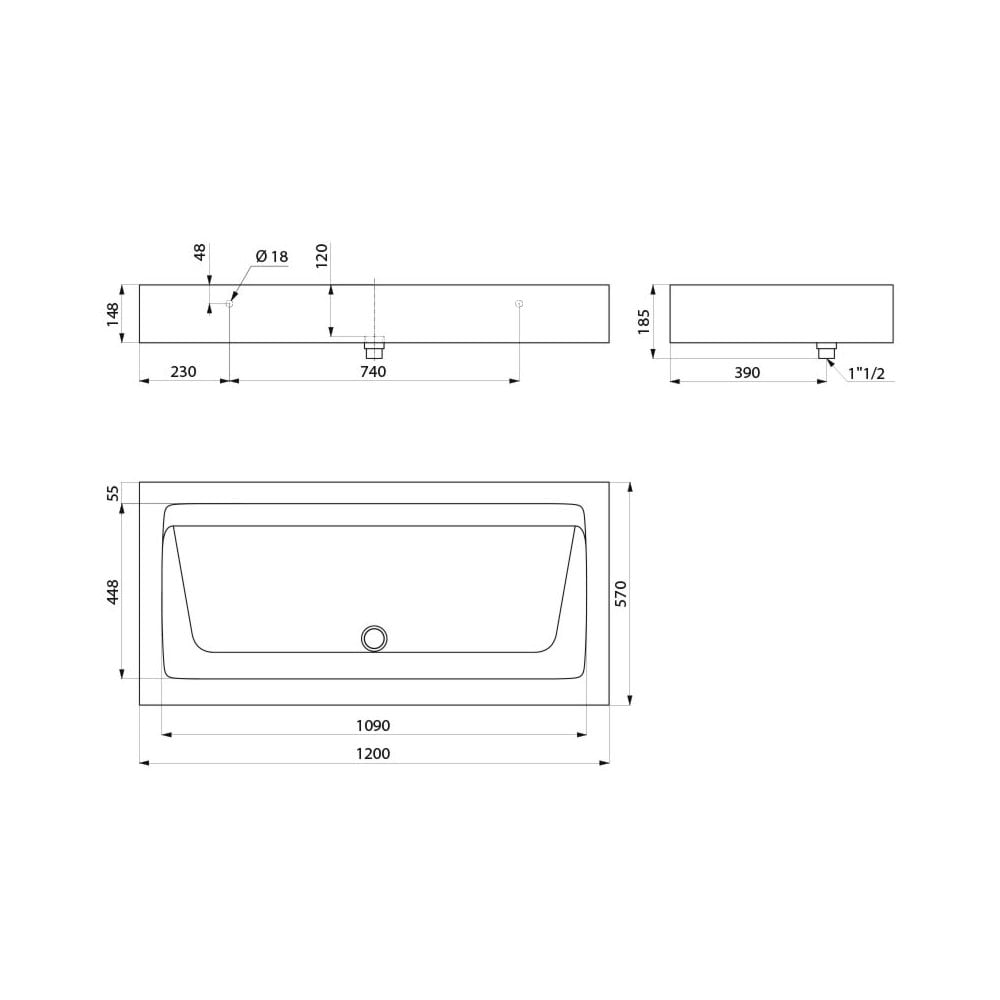 • Dimensions: 1200(L) x 570(W) x 148(H) mm
