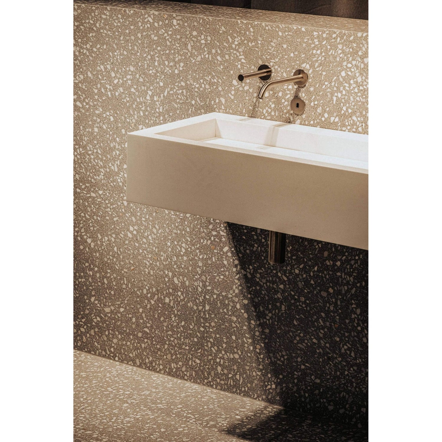 Flawlessly crafted from one solid material accommodating both deck and wall-mounted taps. The modular award-winning solid surface, seamless angled basin leads to a discreet water channel along the rear face. Incorporating a perfectly proportioned drainage hole, while the tight radius corners complement the outer face of the sink.