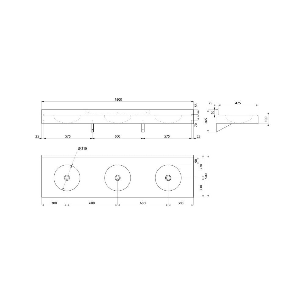 TRIPLO RP Stainless Steel Wall-Mounted Multiple Washbasin with Splaashback is available in a 1800mm length, suitable for 3 taps. It comes complete with bacteriostatic 304 stainless steel to prevent the growth of bacteria. Complying with European standard EN 14688 it brings a stylish, yet safe and durable sink to any commercial washroom.
