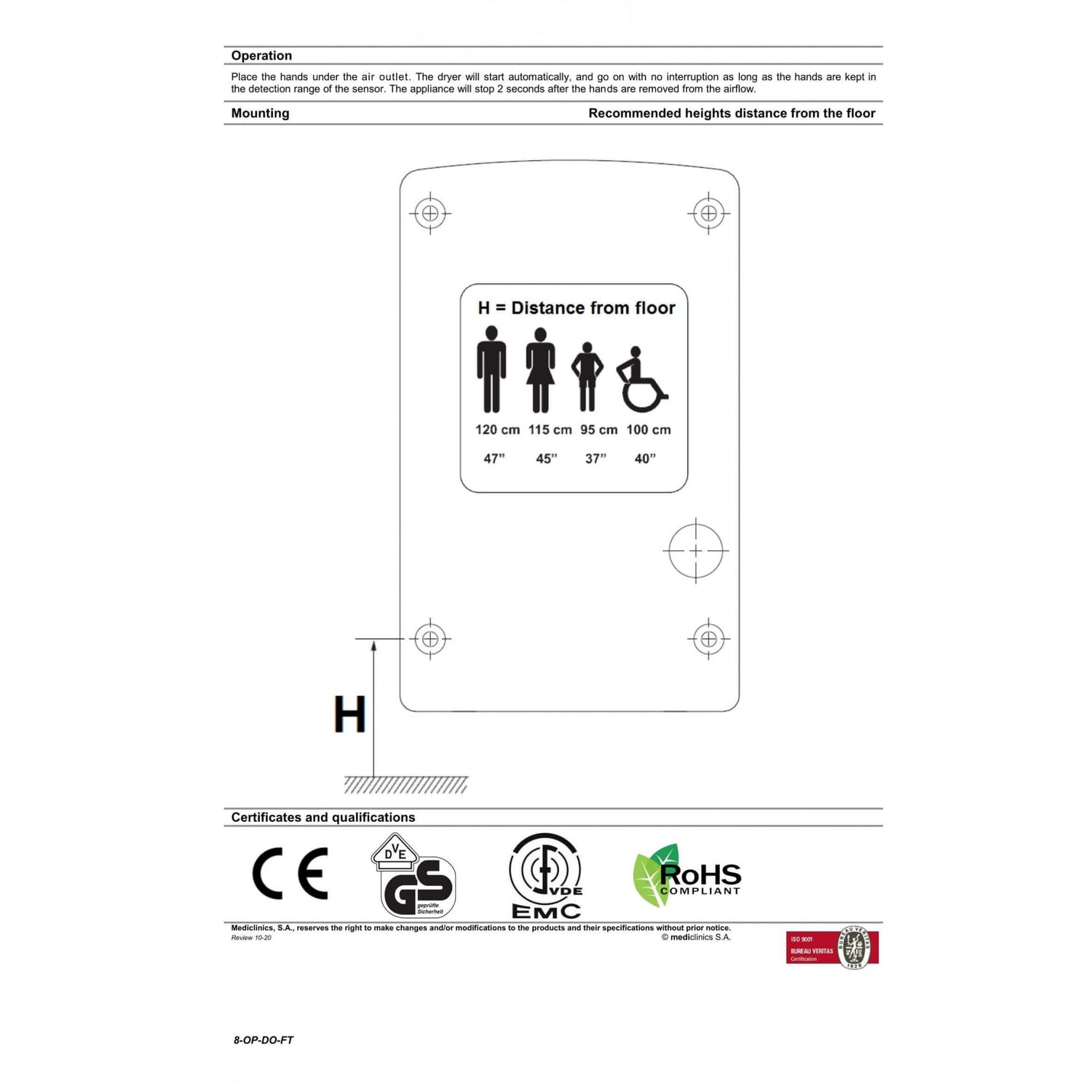 Certificates CE. ROHS, EMC, GS Approved