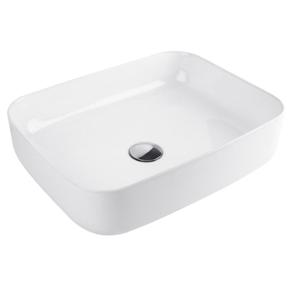 A rectangle ceramic countertop wash basin with contemporary style. Comes without tap hole, overflow or waste.