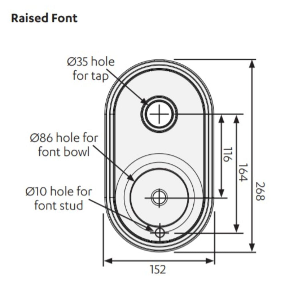 Integrated Raised Font 135mm HydroTap Classic, Classic Plus & Touch Free Wave