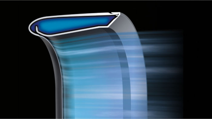 Dyson cooling fans feature Air Multiplier™ technology, which combines principles used in turbochargers and jet engines to amplify airflow up to 15 times. This enables the Dyson Cool tower fan to project up to 500 litres of air per second. For powerful, long-range air projection to cool you quickly.¹